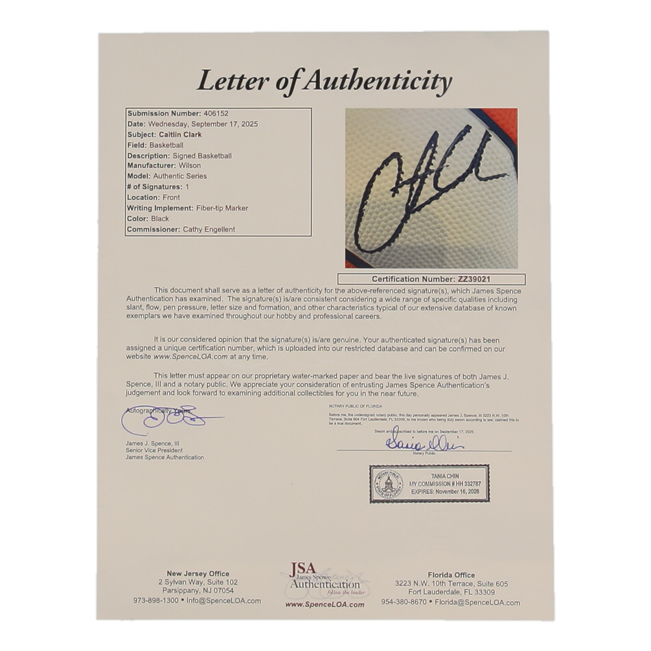 Caitlin Clark Signed WNBA Basketball (JSA)