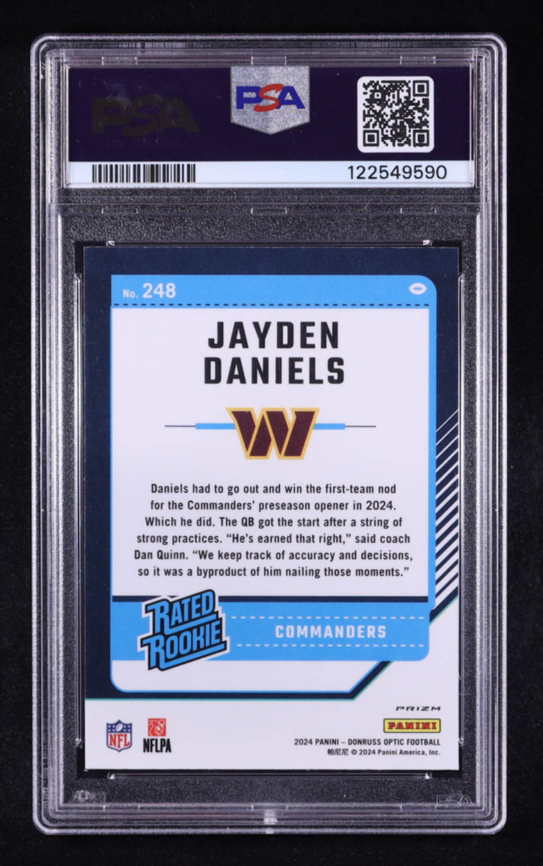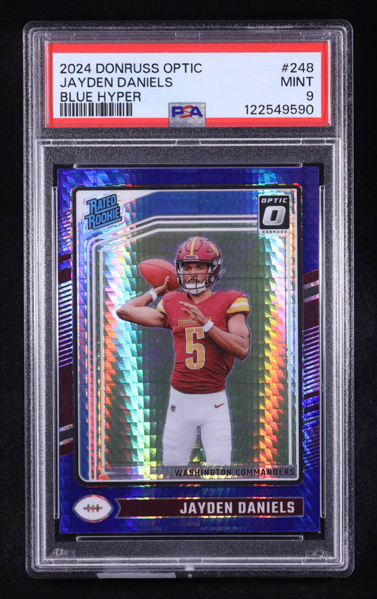 Jayden Daniels 2024 Donruss Optic Blue Hyper #248 RR RC (PSA 9)