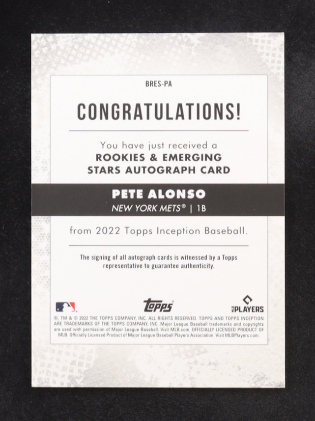 Pete Alonso 2022 Topps Inception Rookies & Emerging Stars Auto #BRES-PA #64/99