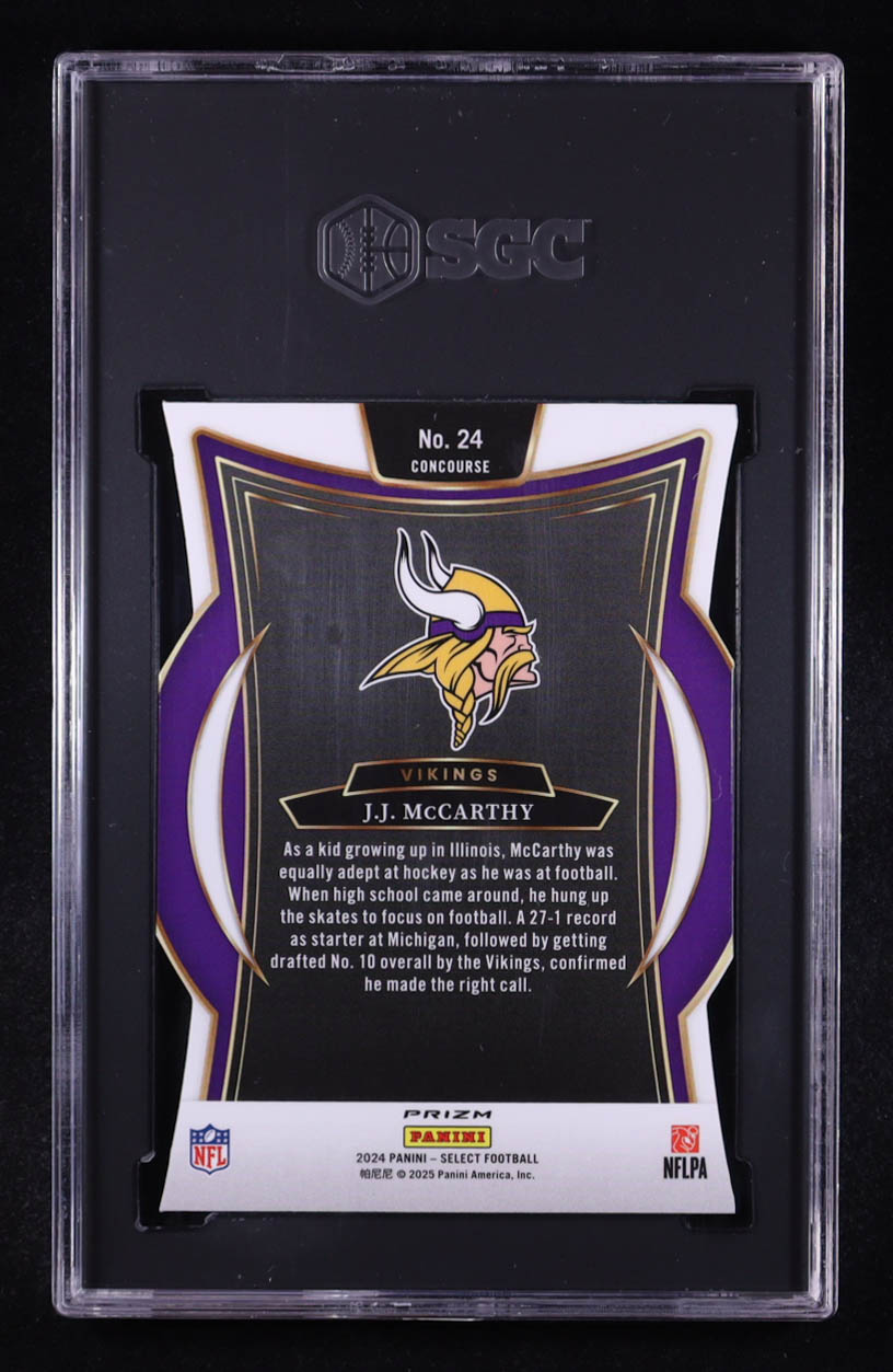 JJ McCarthy 2024 Select Prizm Silver Die Cut #24 RC (SGC 8)