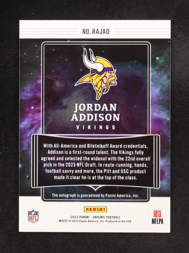 Jordan Addison 2023 Panini Origins Rookie Autographs #RAJAD RC #06/49