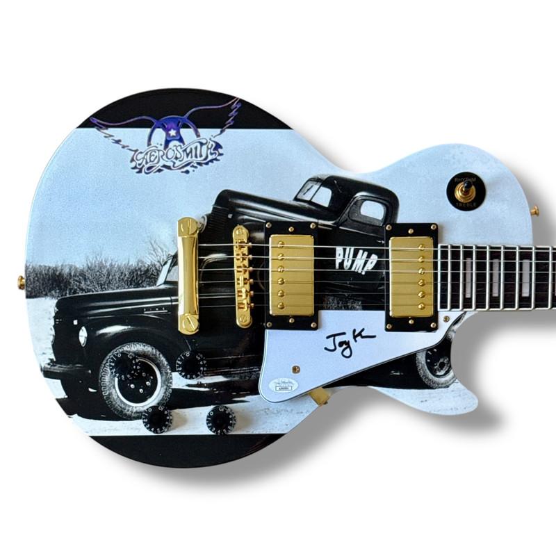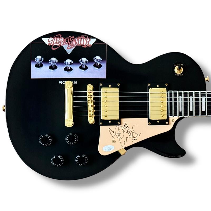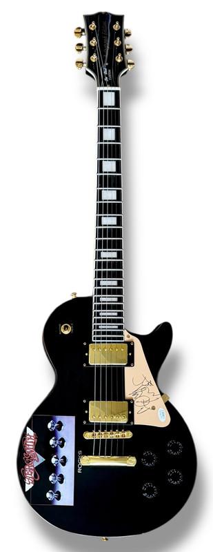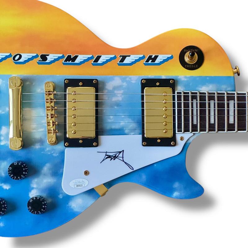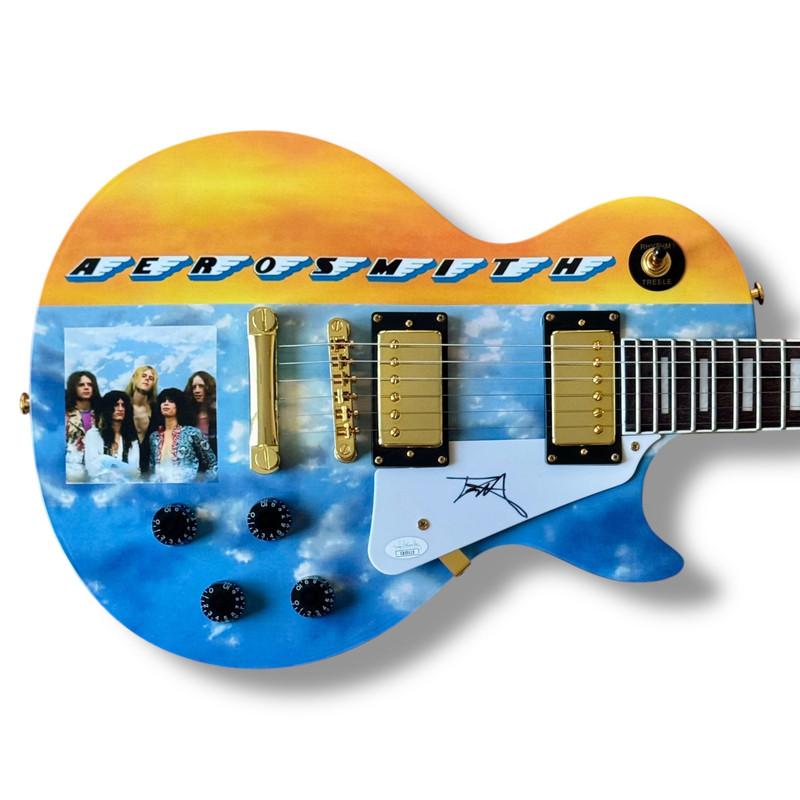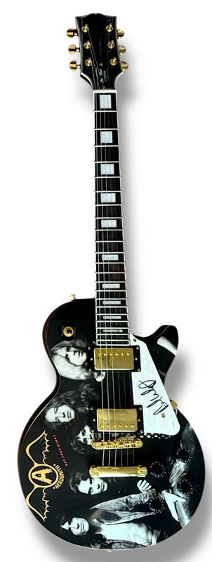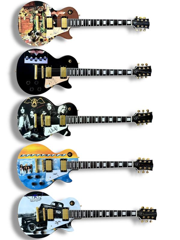 Set of (5) 39" custom Autograph Edition Les Paul style electric guitars signed by all five members of Aerosmith! Signers include Steven Tyler (Lead Singer), Joe Perry (Lead Guitarist), Brad Whitford (Rhythm Guitarist), Tom Hamilton (Bassist), and Joey Kramer (Drummer).