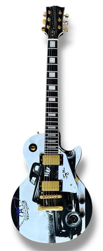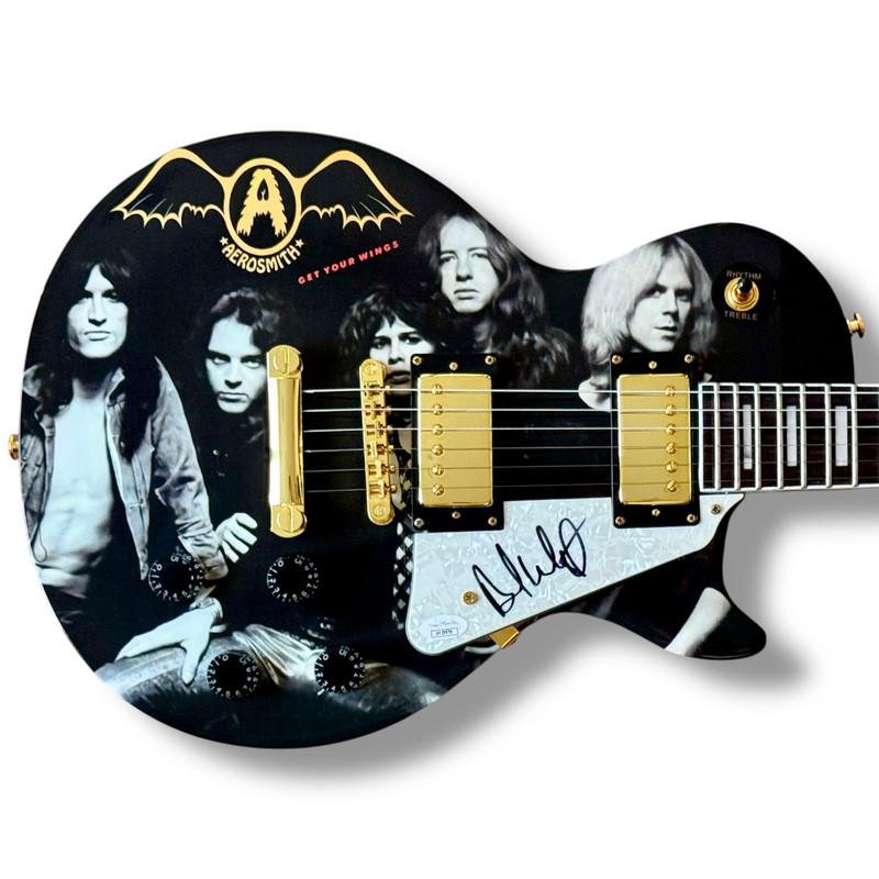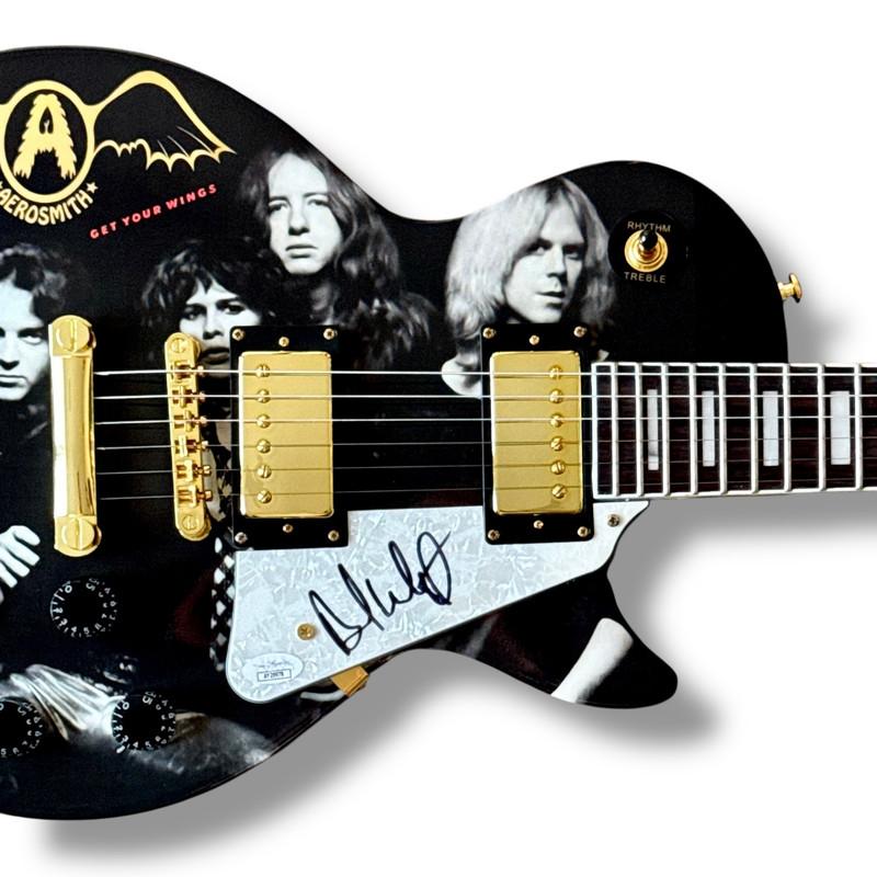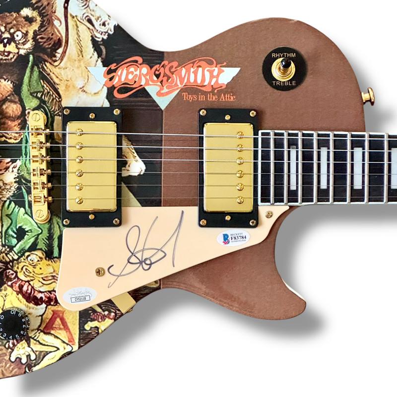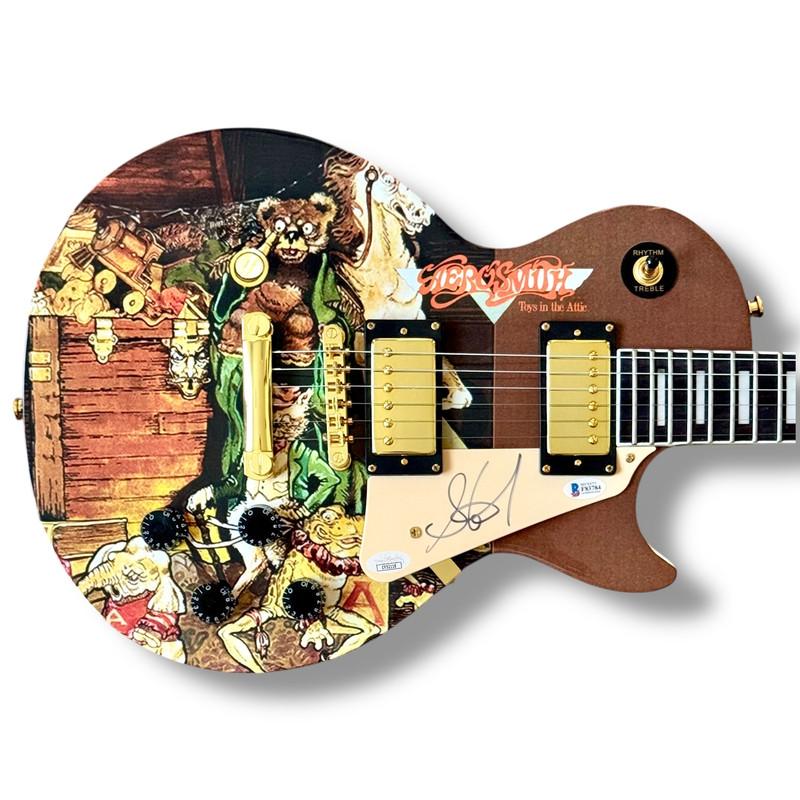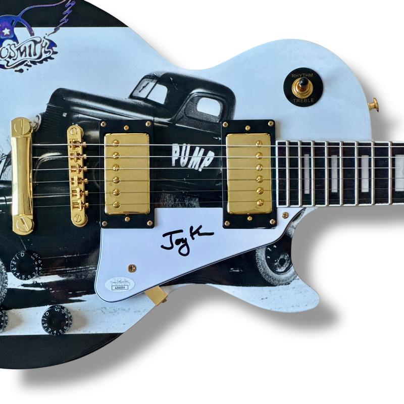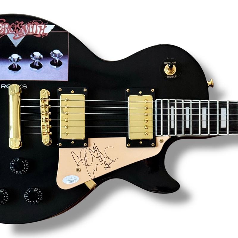 Set of (5) 39" custom Autograph Edition Les Paul style electric guitars signed by all five members of Aerosmith! Signers include Steven Tyler (Lead Singer), Joe Perry (Lead Guitarist), Brad Whitford (Rhythm Guitarist), Tom Hamilton (Bassist), and Joey Kramer (Drummer).