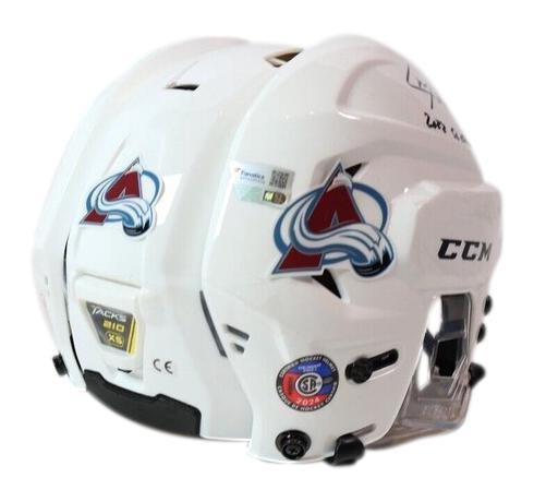 CCM Colorado Avalanche full-sze helmet has been hand-signed and inscribed by Cale Makar.
