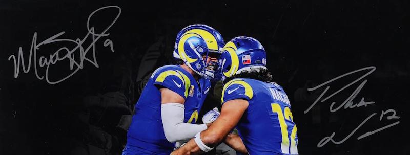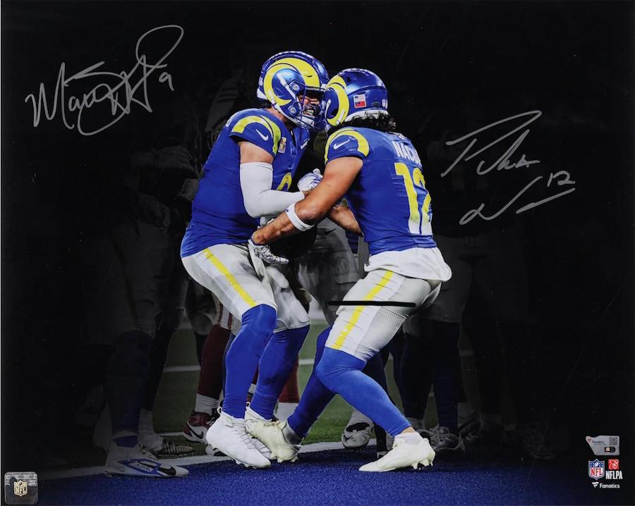 Photo measures 16" x 20" and has been hand-signed by Matthew Stafford and Puka Nacua (Los Angeles Rams).