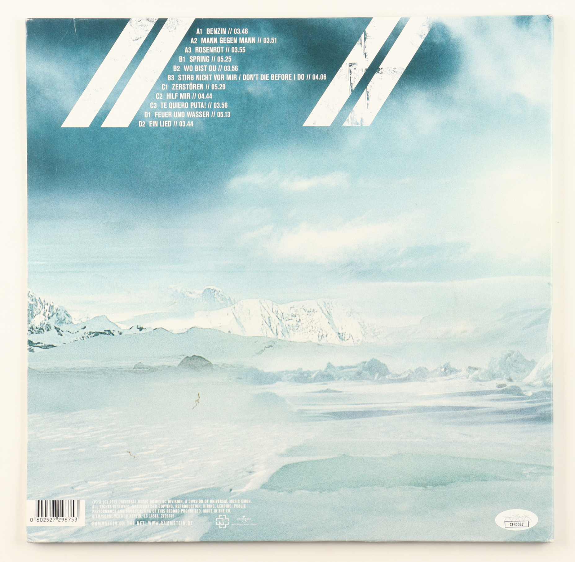 Album cover has been hand-signed by Oliver Riedel, Richard Kruspe and Christoph Schneider.