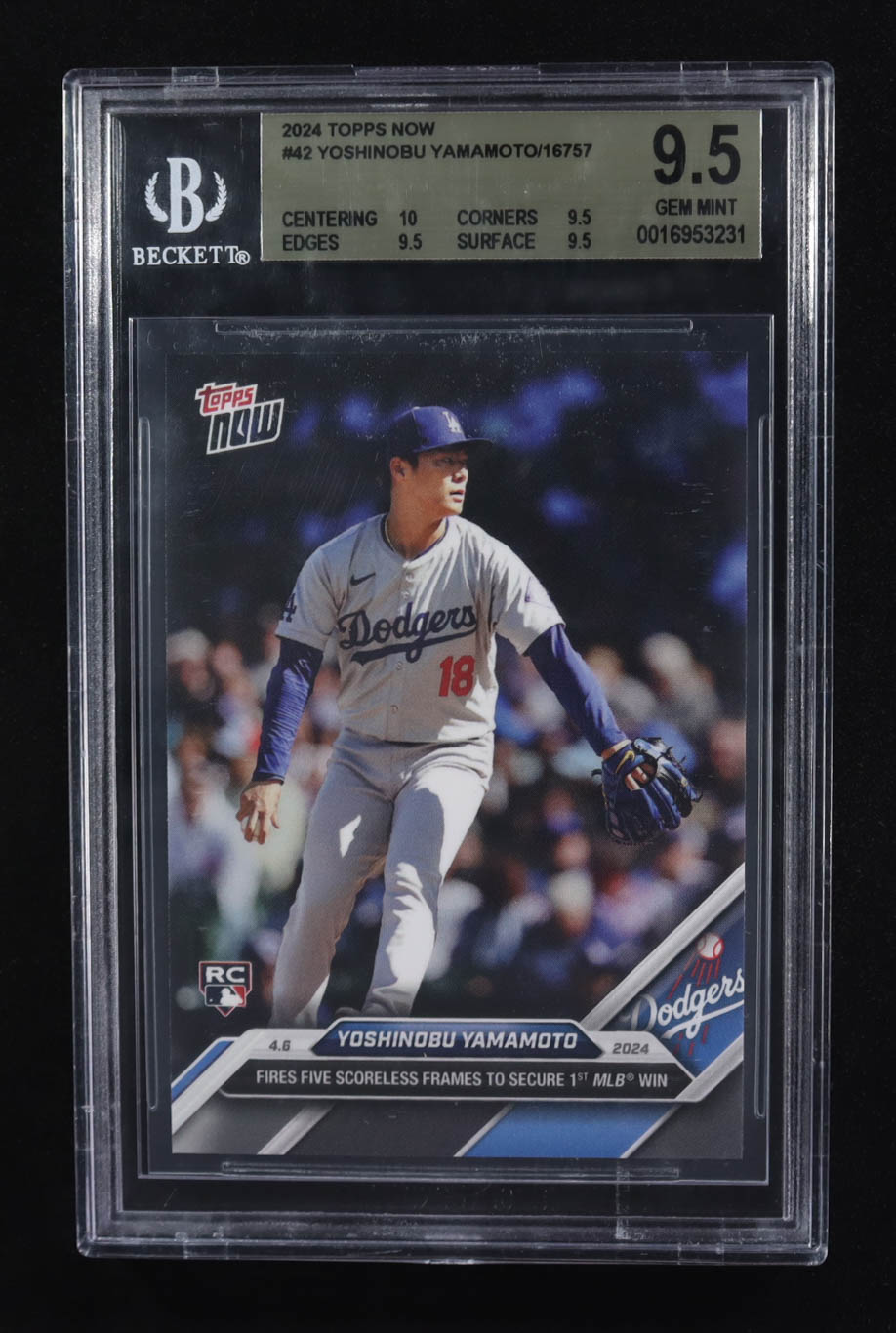 Yoshinobu Yamamoto 2024 Topps Now #42 RC (BGS 9.5)