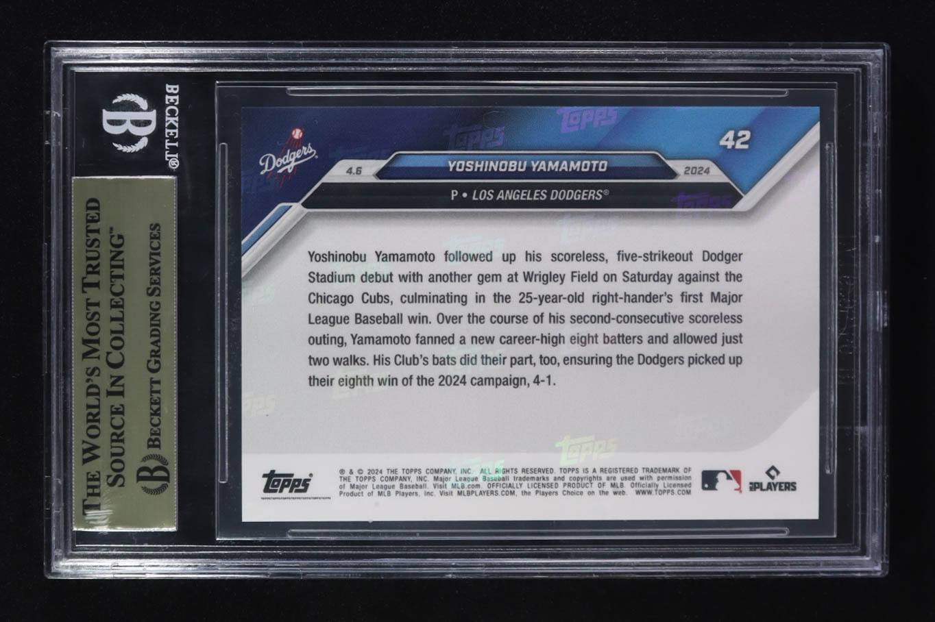 Card has been graded Beckett (BGS) 9.5. Please see photos for more details regarding the condition of the card (Los Angeles Dodgers).
