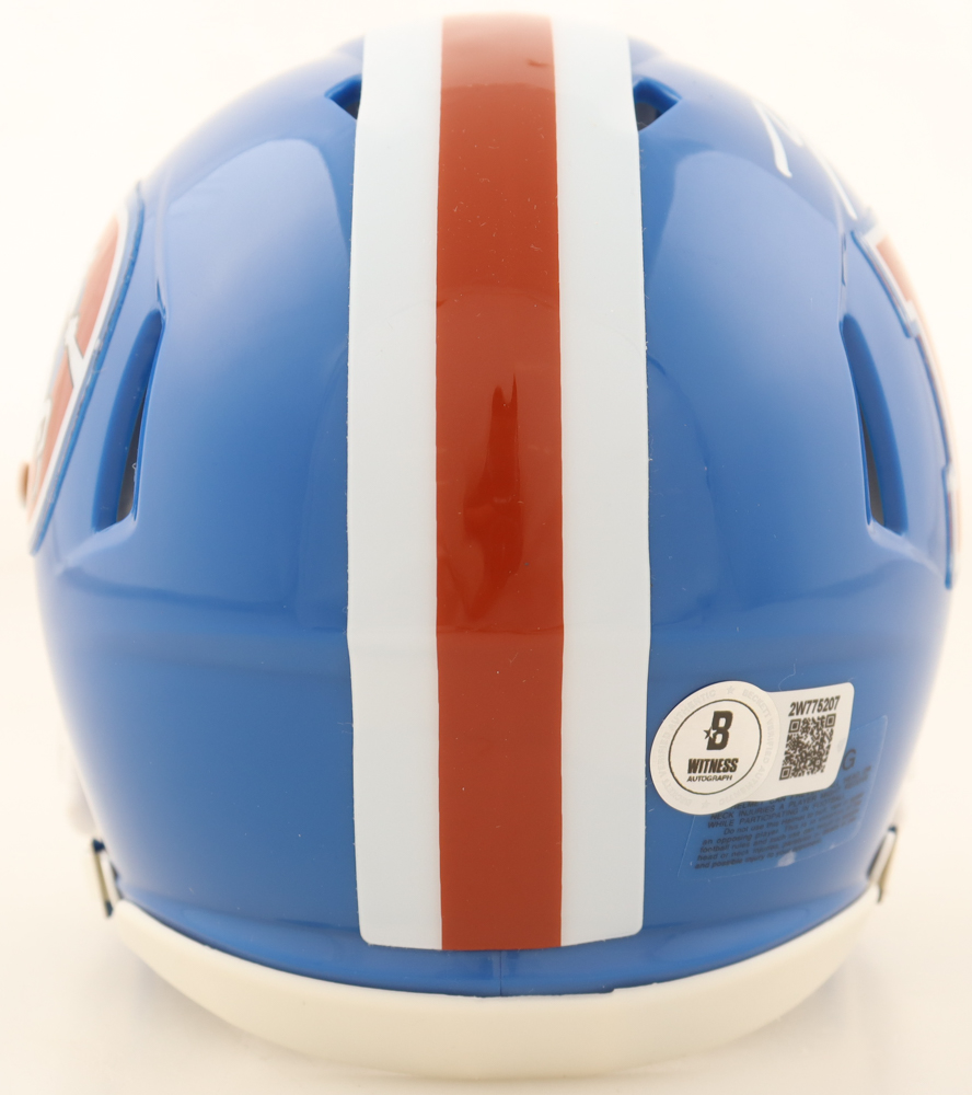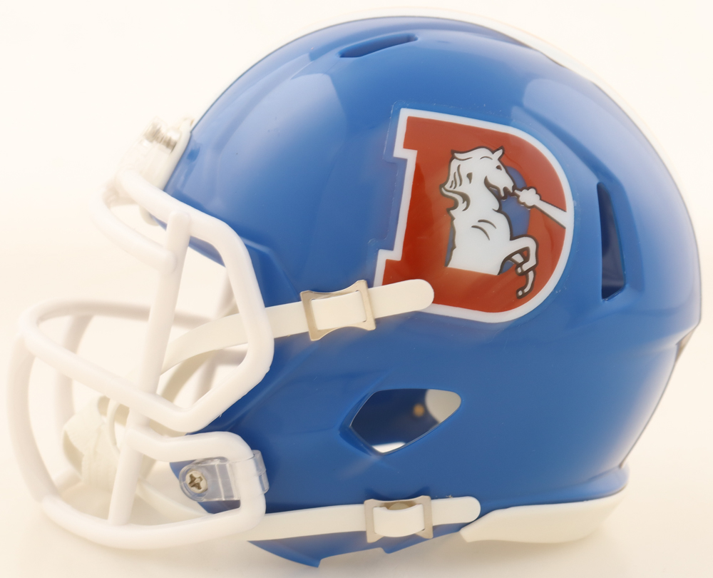 Riddell Denver Broncos Throwback Speed mini helmet. Hand-signed by Talanoa Hufanga.