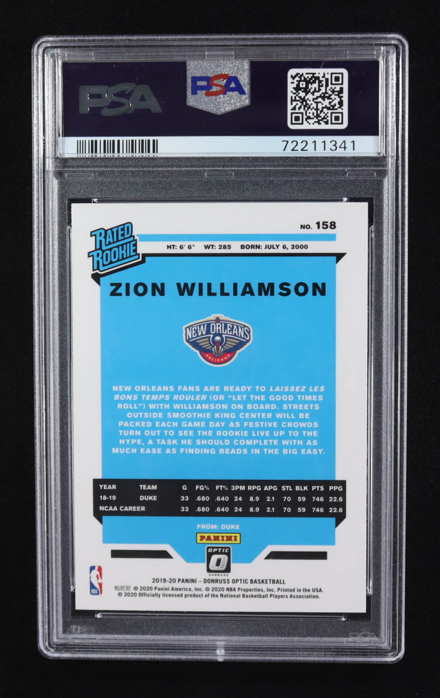 Zion Williamson 2019-20 Panini Donruss Optic Rated Rookie #158 RC (PSA 10)
