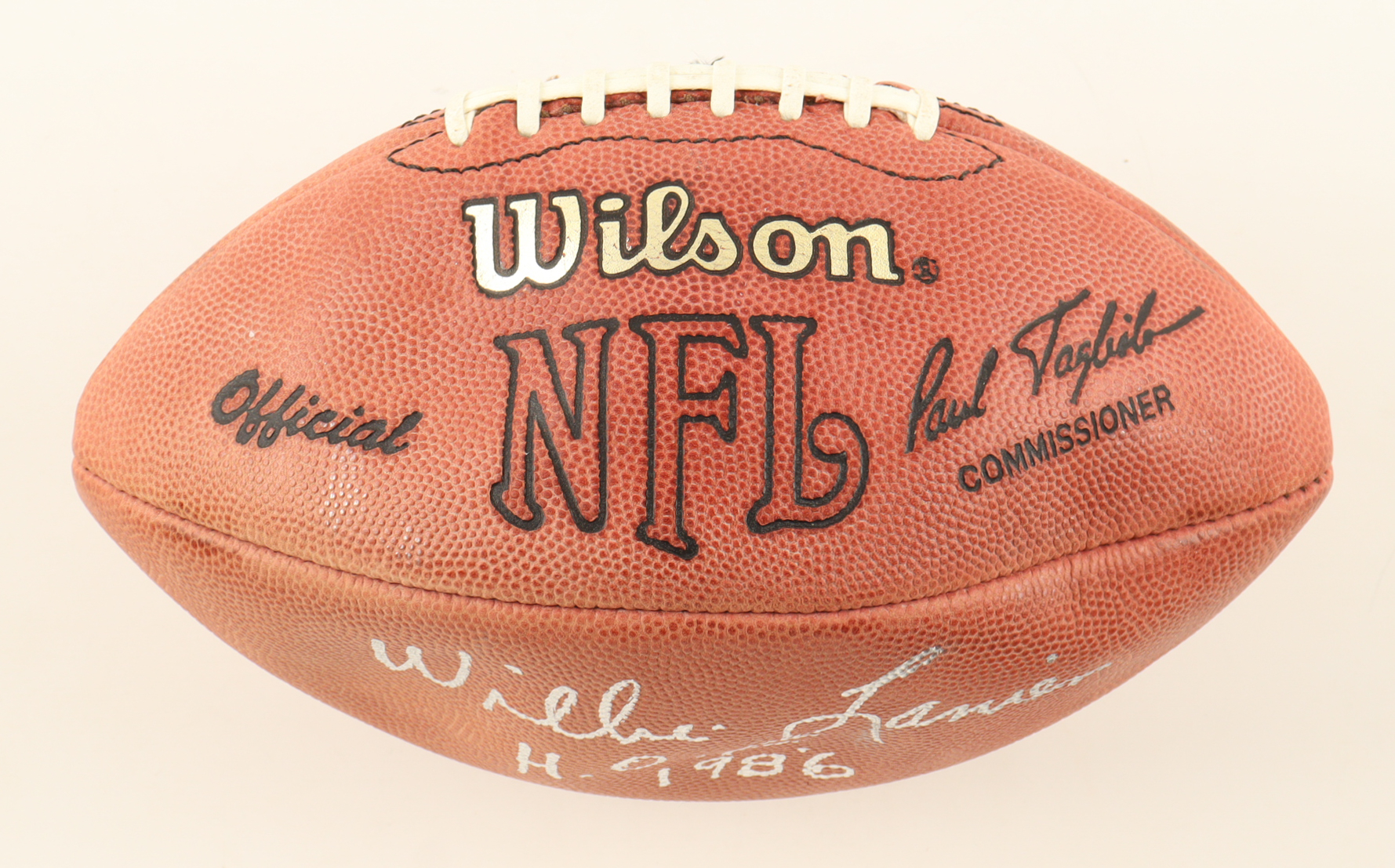 Wilson Official full-size NFL football. Hand-signed and inscribed by Willie Lanier (Kansas City Chiefs).