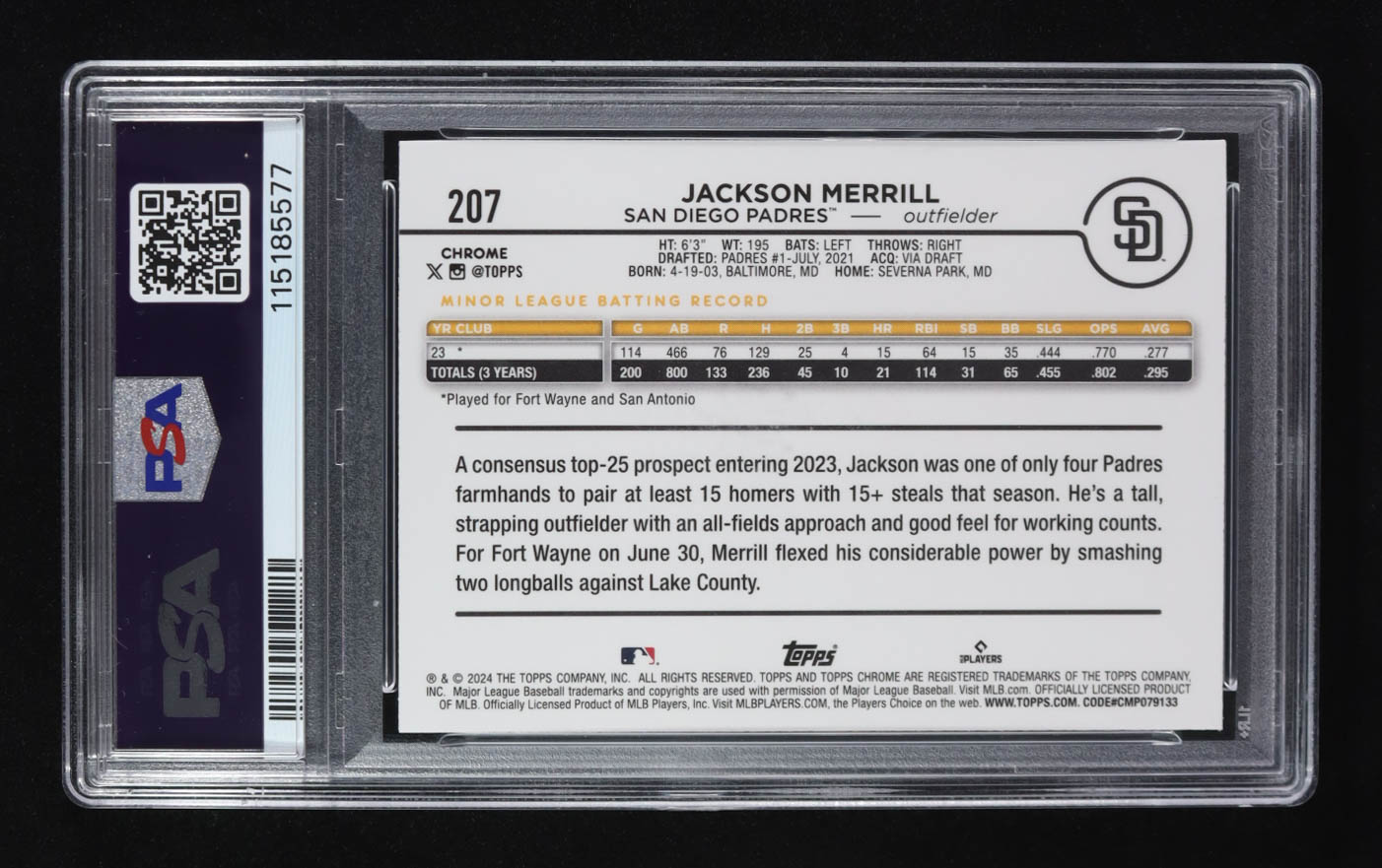 Jackson Merrill 2024 Topps Chrome L/E Logofractor #207 RC (PSA 9)