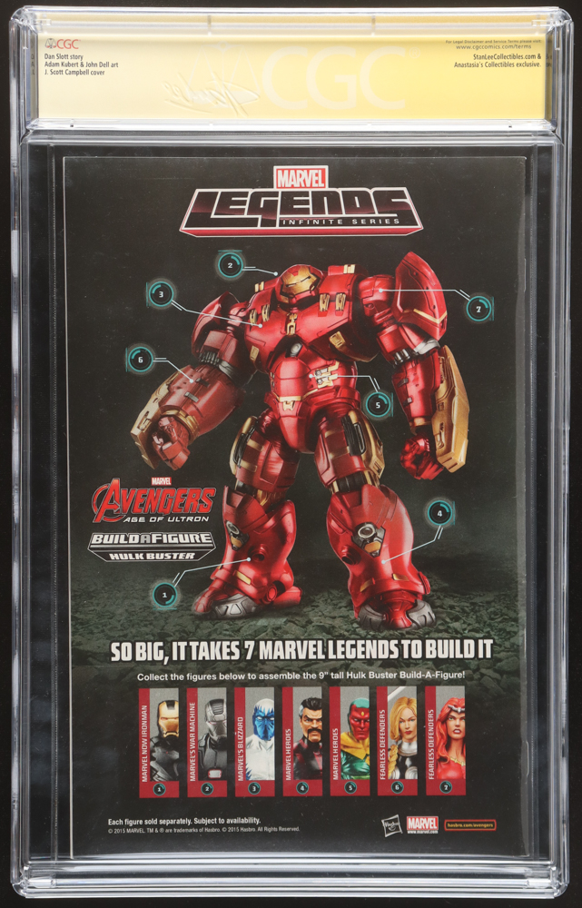Marvel comic book dated September 2015 has been graded CGC 9.4 and hand-signed by Stan Lee (D. 2018) and J. Scott Campbell. Please see photos for details regarding the condition of the comic.