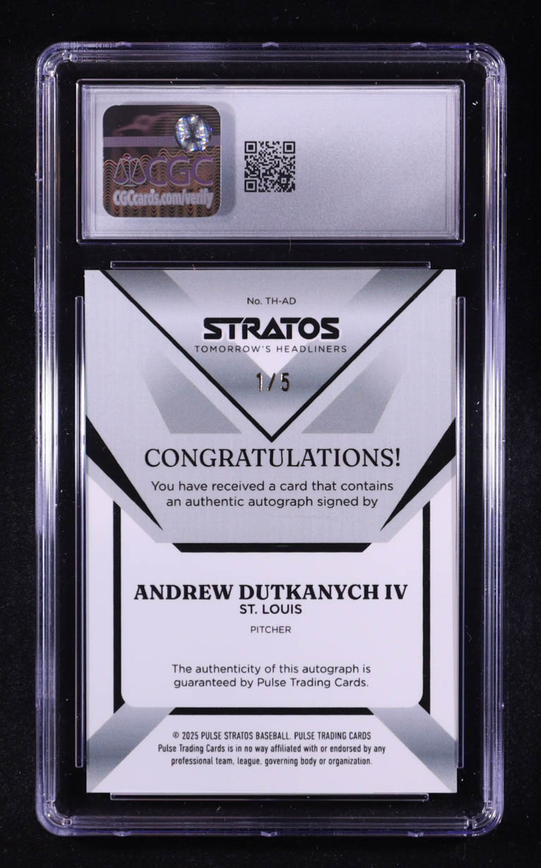 Andrew Dutkanych 2025 Pulse Stratos Tomorrow's Headliners Autographs Red #THAD #1/5 RC (CGC 9 | Auto 10)
