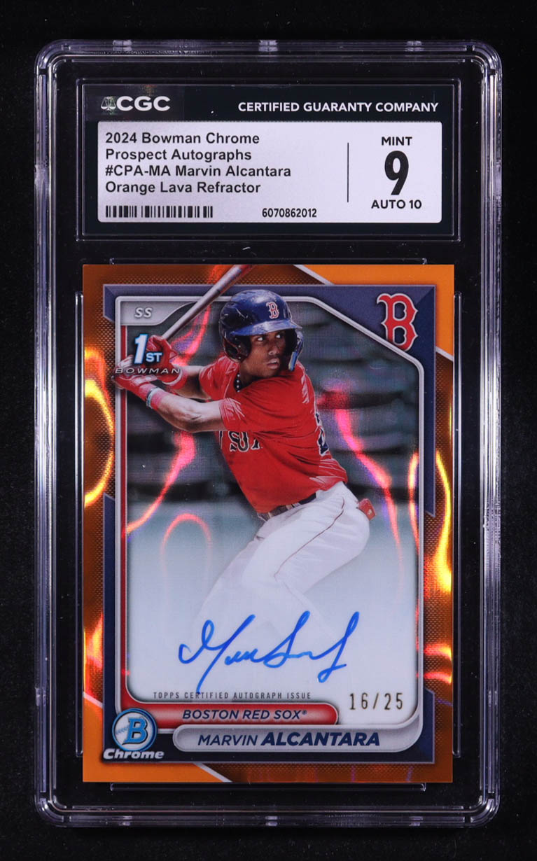 Marvin Alcantara 2024 Bowman Chrome Prospect Autographs Orange Lava Refractors #CPAMA #16/25 RC (CGC 9 | Auto 10)