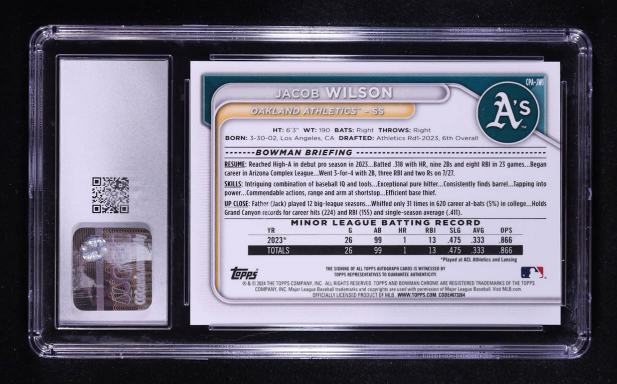 Jacob Wilson 2024 Bowman Chrome Prospect Autographs #CPAJWI RC (CGC 9 | Auto 10)