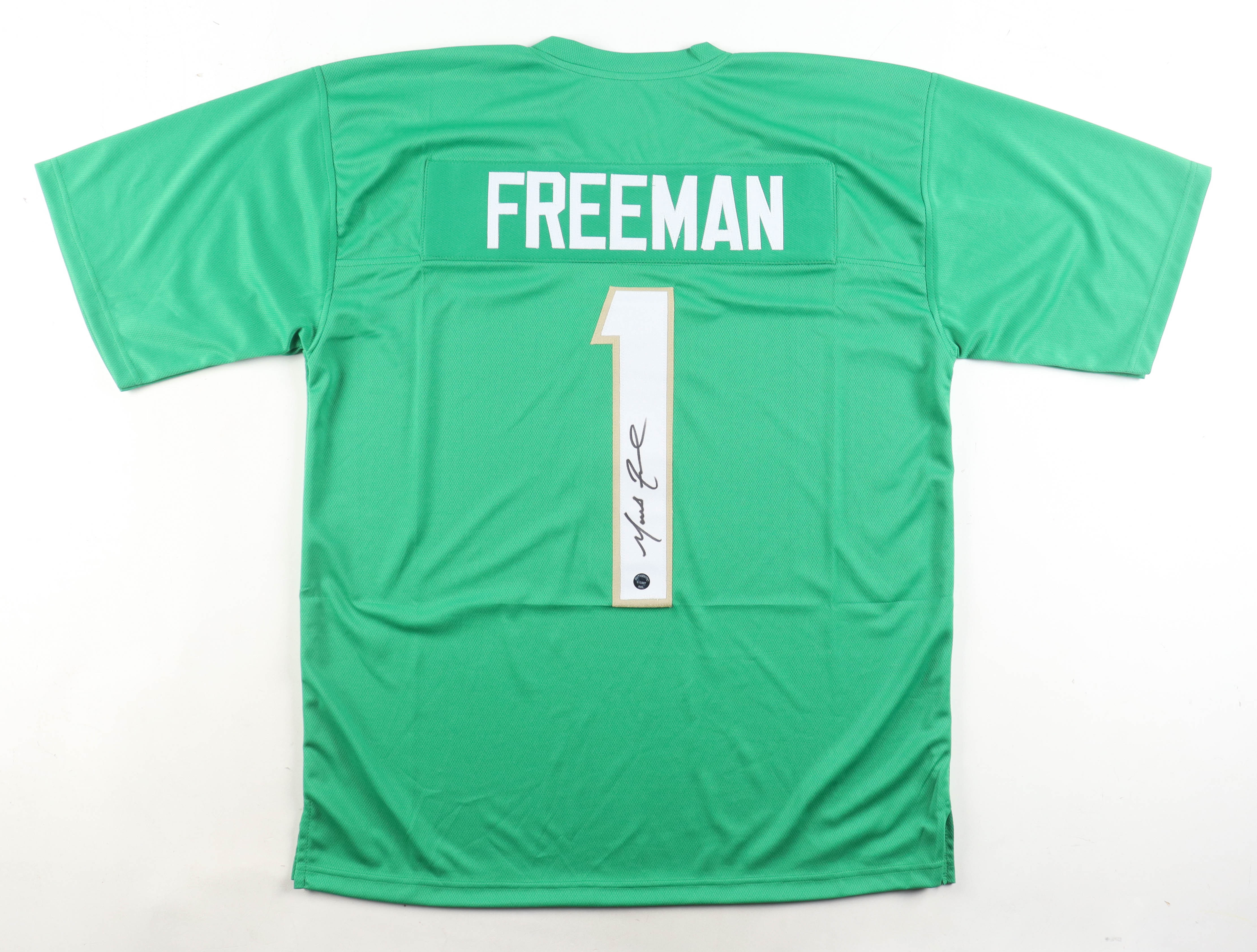 Custom jersey. Everything sewn on, size XL. Hand-signed by Marcus Freeman.