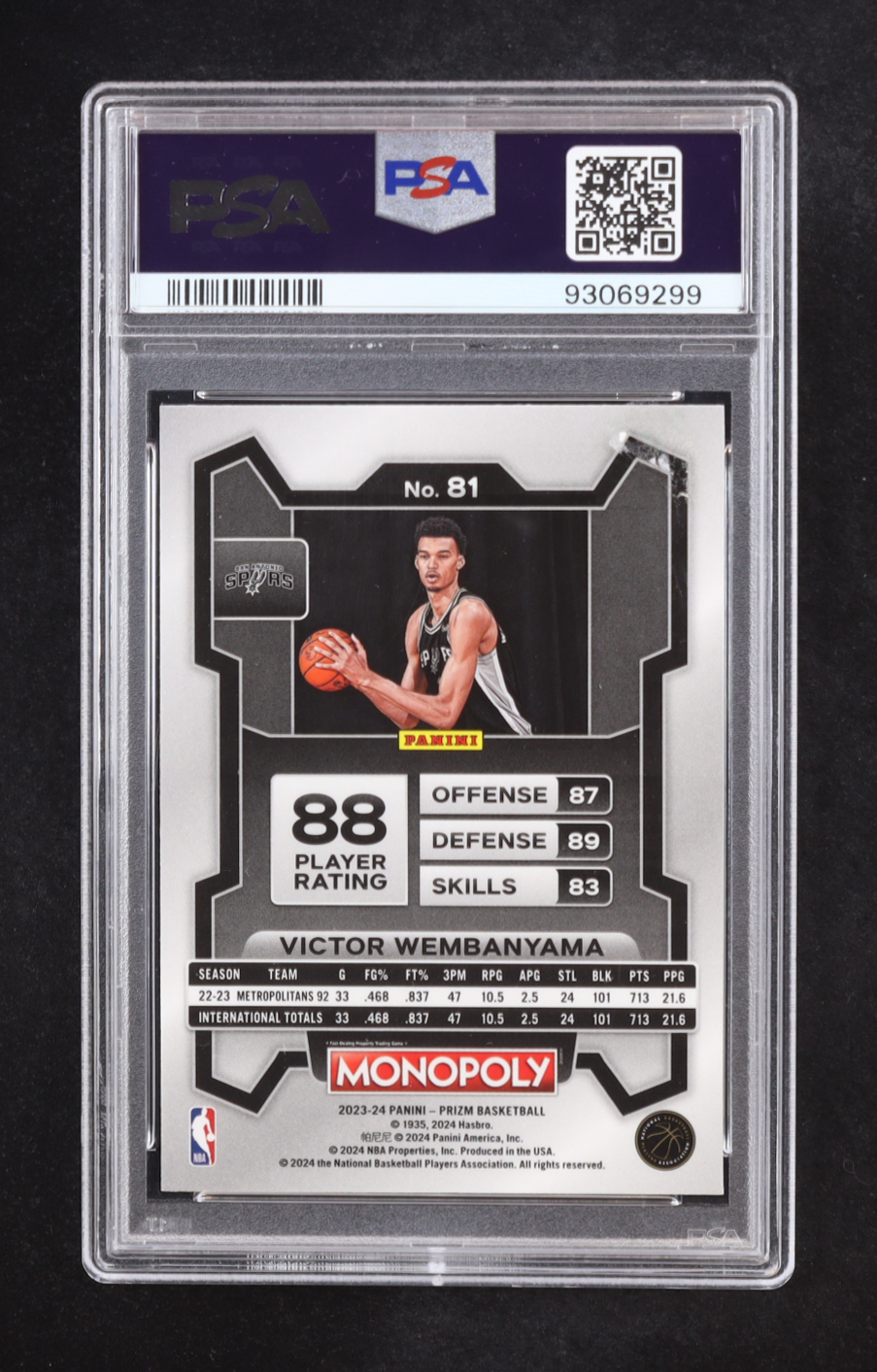 Victor Wembanyama 2023 Panini Prizm Monopoly #81 RC (PSA 10)