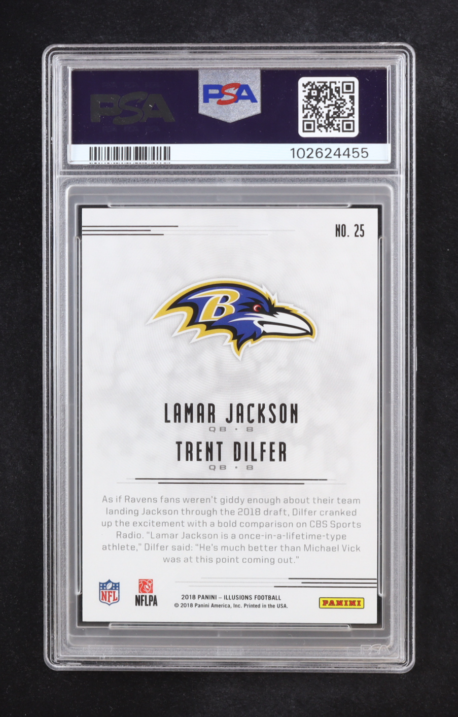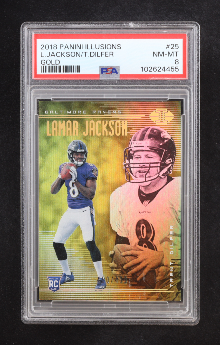 Lamar Jackson / Trent Dilfer 2018 Panini Illusions Gold #25 RC #450/499 (PSA 8)