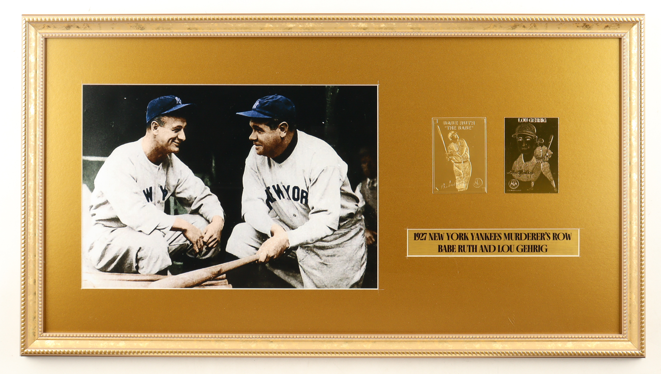 "1927 Yankees Murderers Row" Custom Framed Photo with Set of (2) Babe Ruth & Lou Gehrig 23Kt Gold Cards