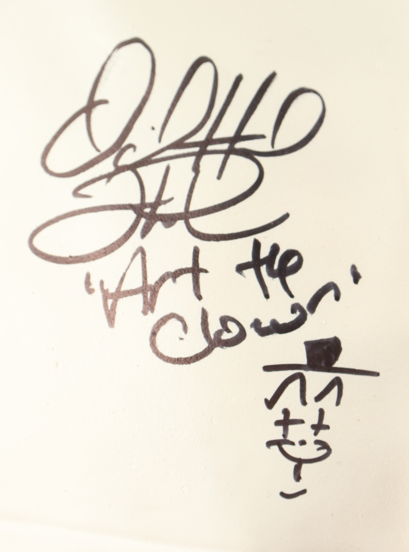 David Howard Thornton Signed "Terrifier" Art the Clown Mask Inscribed "Art the Clown" with Hand-Drawn Sketch (JSA)