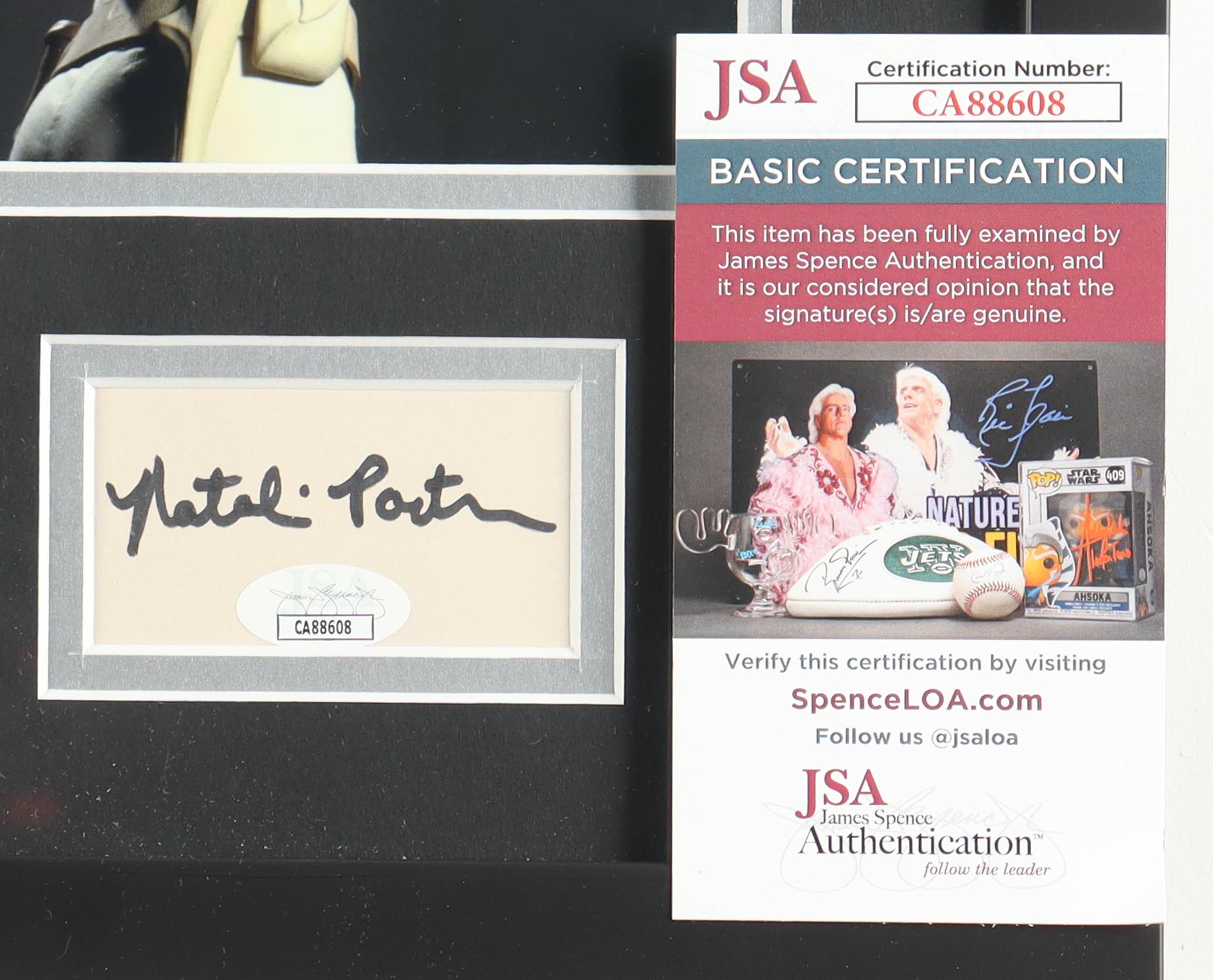 Custom frame measures approximately 10" x 14" in size and features a cut that is hand-signed by Natalie Portman.