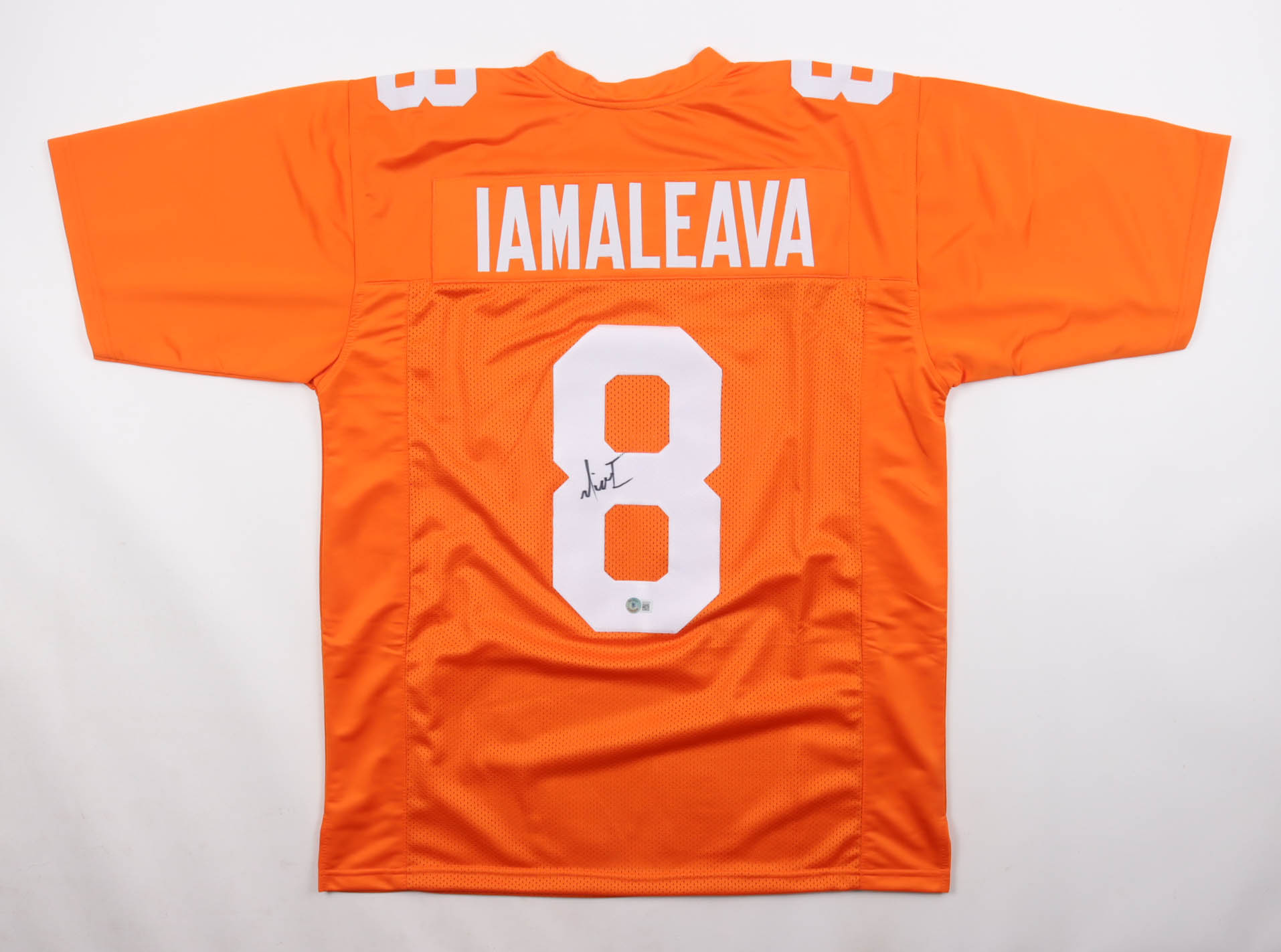 Custom jersey with everything sewn on, size XL. Hand-signed by Nico Iamaleava.