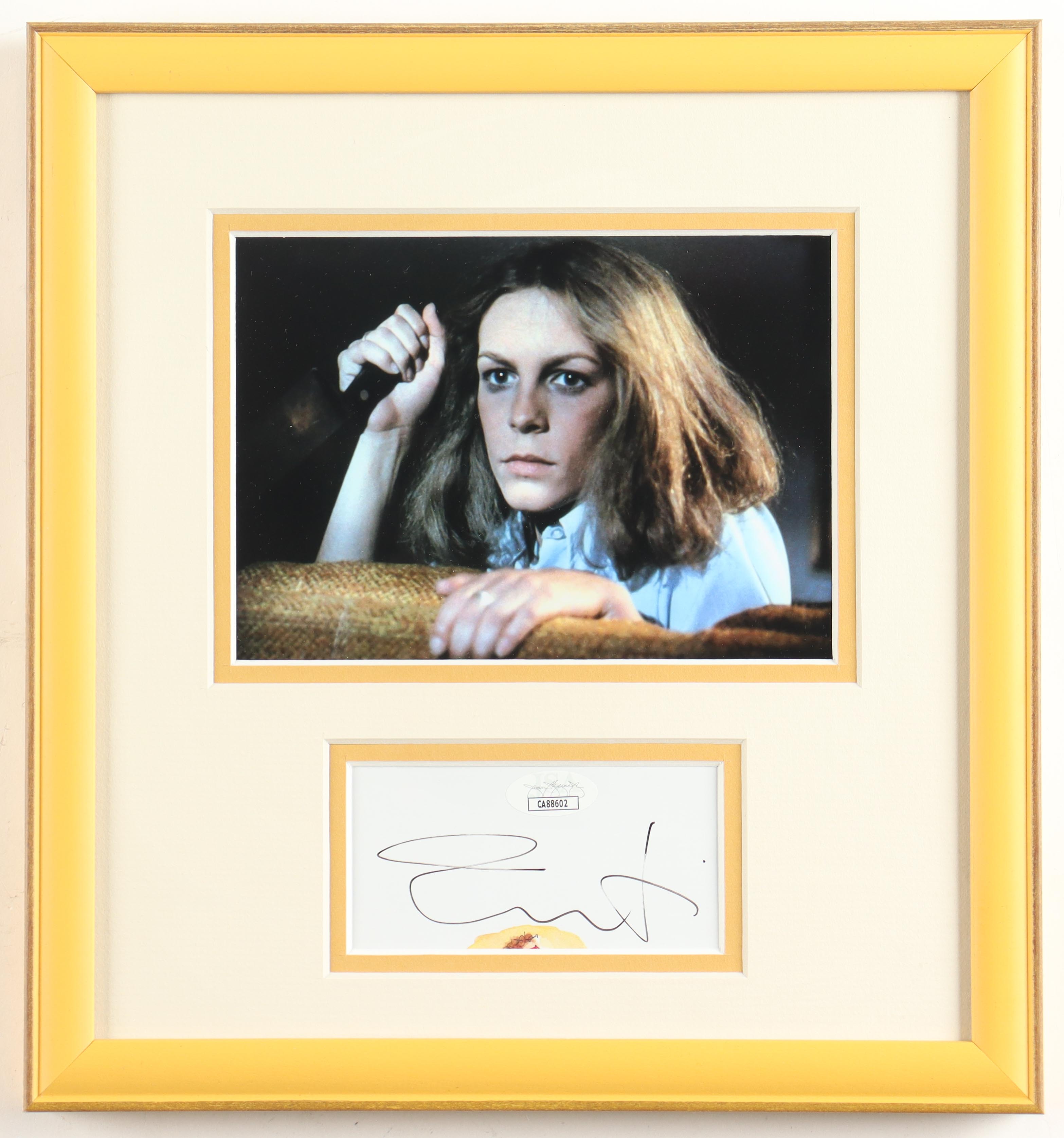 Custom frame measures approximately 11" x 11.5" in size and features a cut that is hand-signed by Jamie Lee Curtis.
