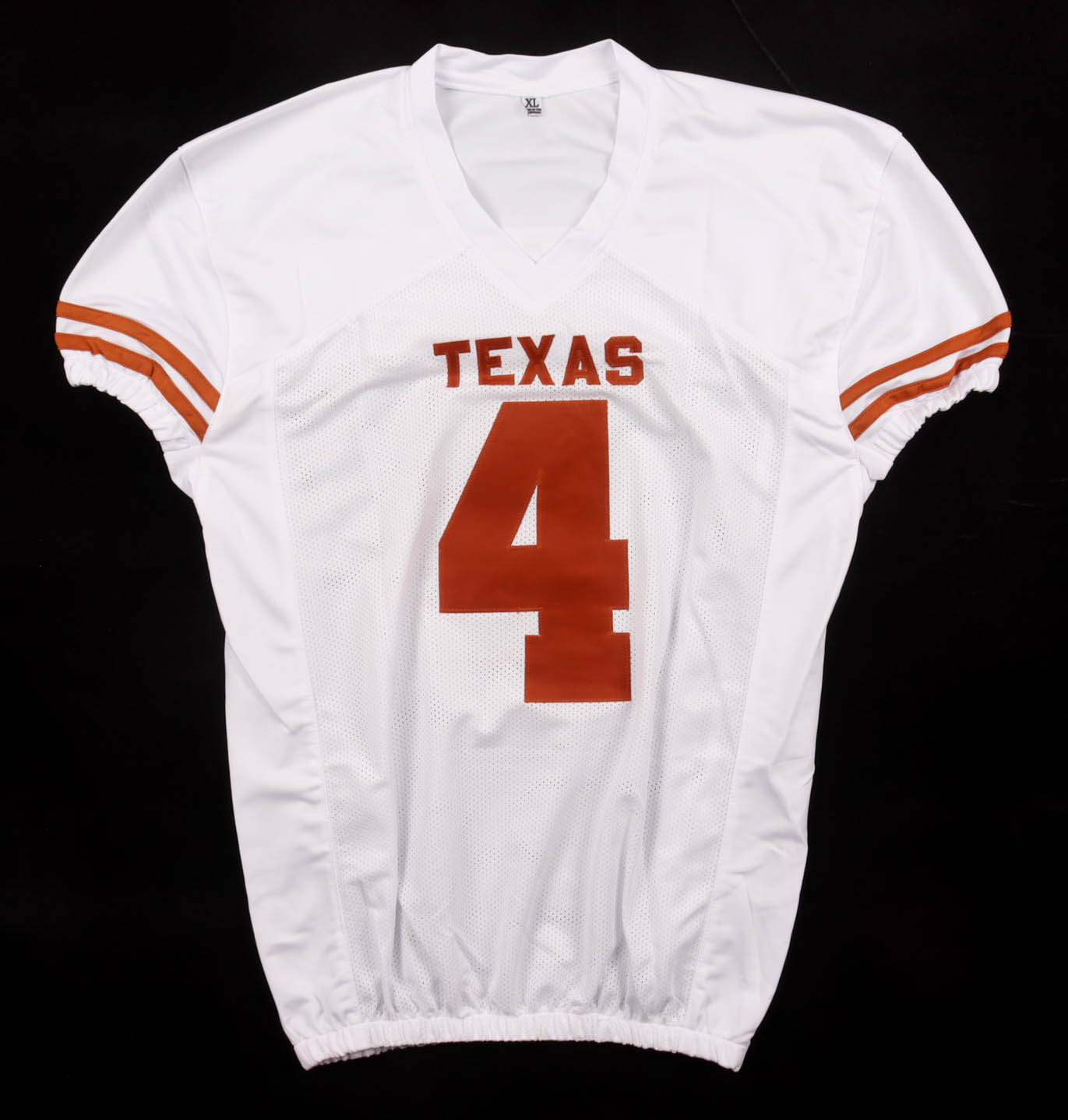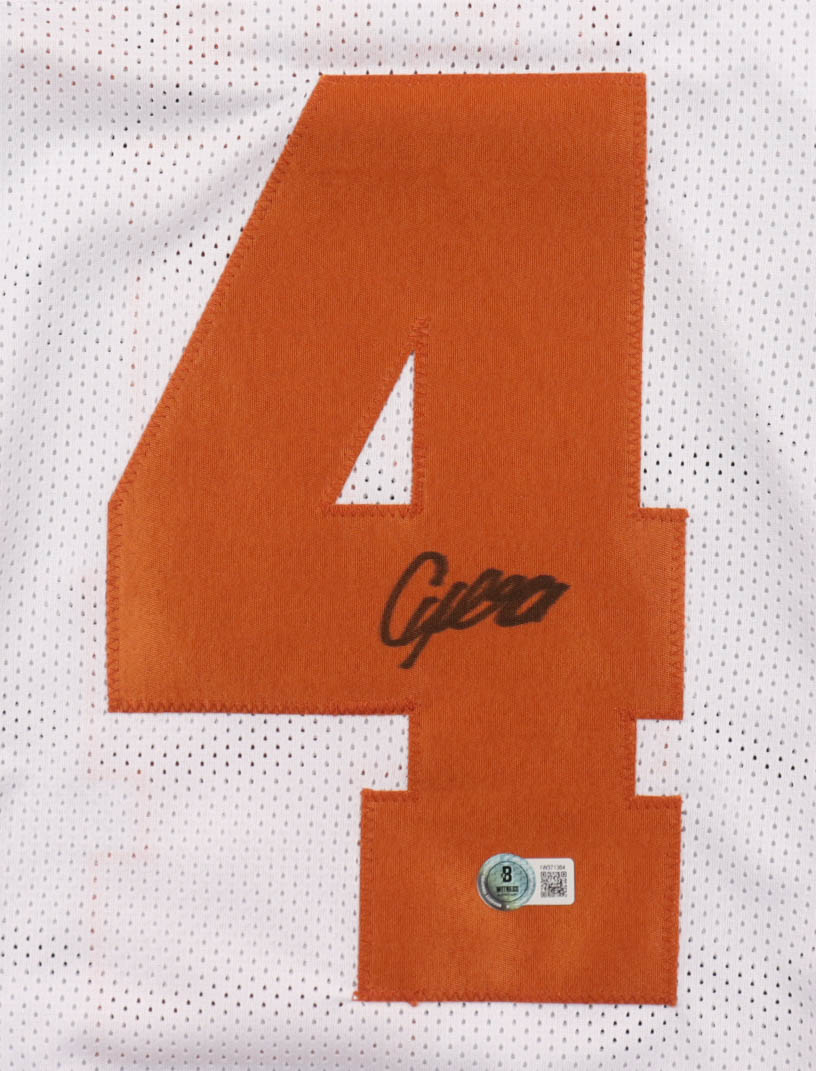 Custom football jersey. Everything sewn on, size XL. Hand-signed by CJ Baxter.