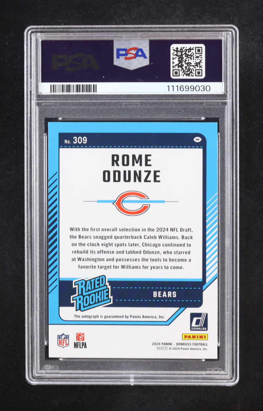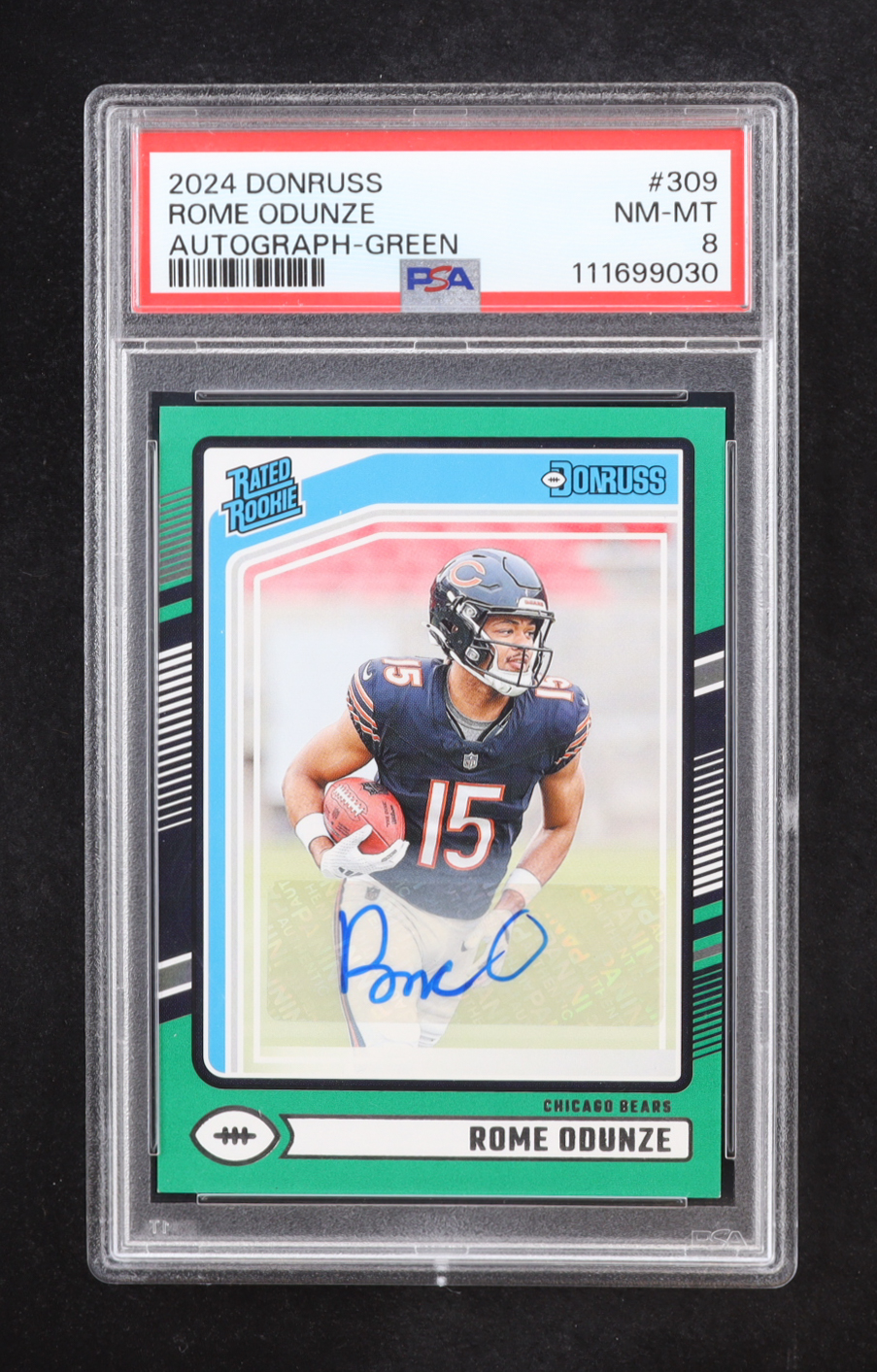 Rome Odunze 2024 Panini Donruss RR Autograph-Green #309 RC (PSA 8)