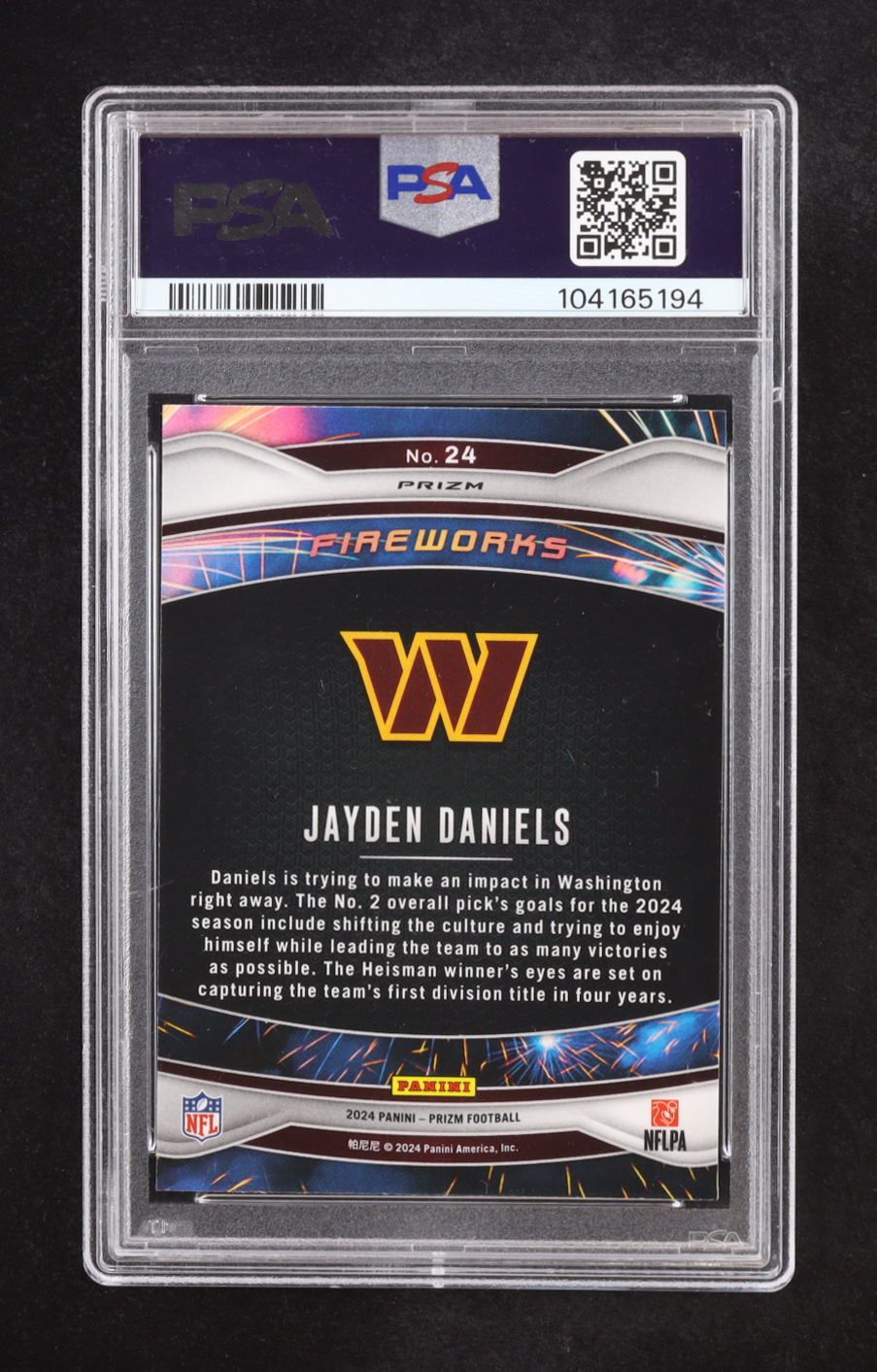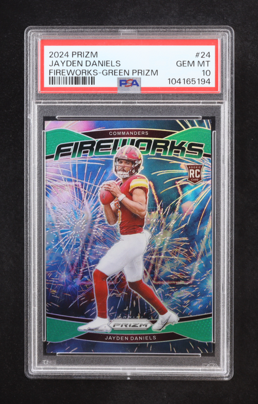Jayden Daniels 2024 Panini Prizm Fireworks Green #24 RC (PSA 10)