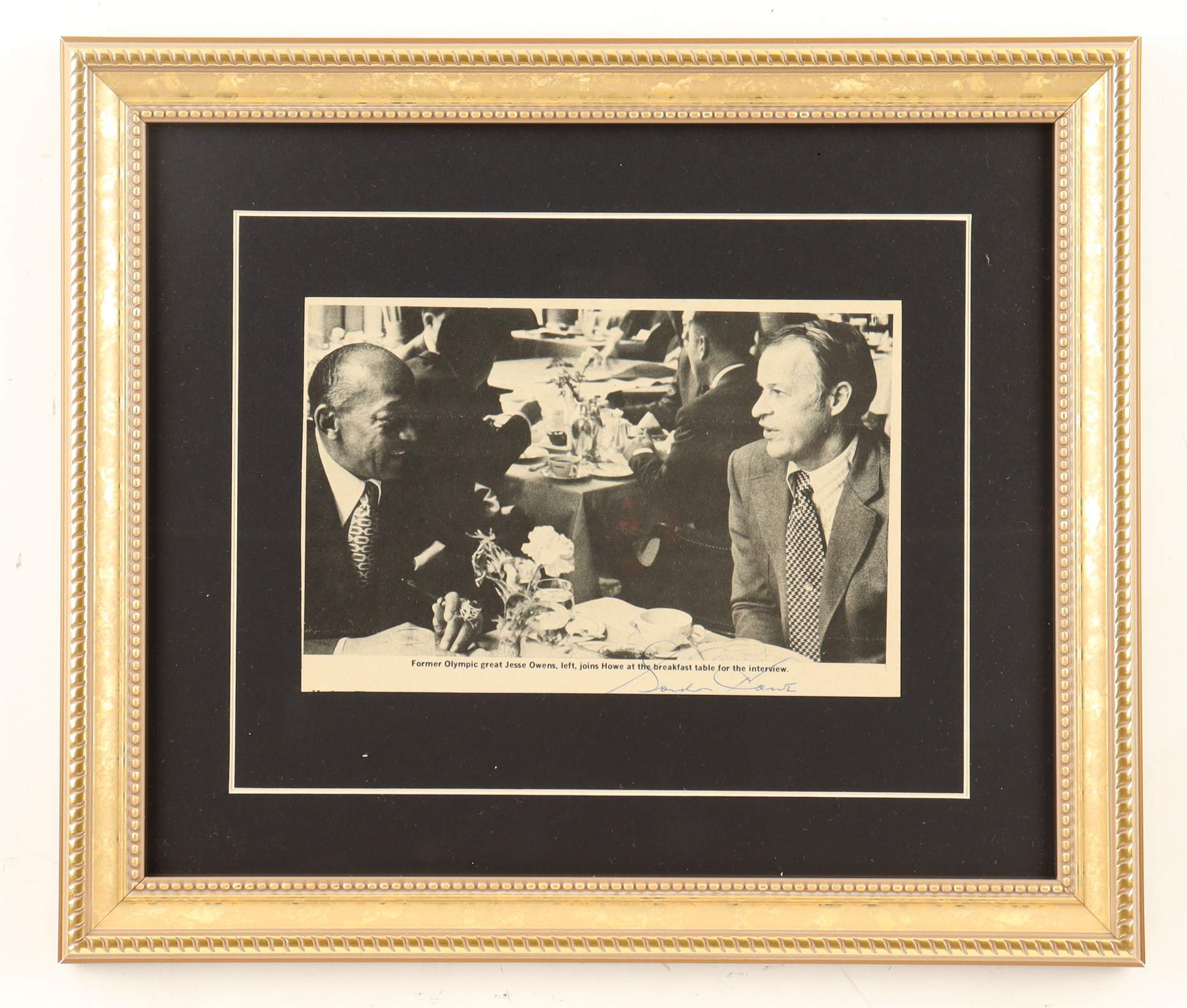 Gordie Howe Signed Custom Framed Photo Display With Jesse Owens (JSA)