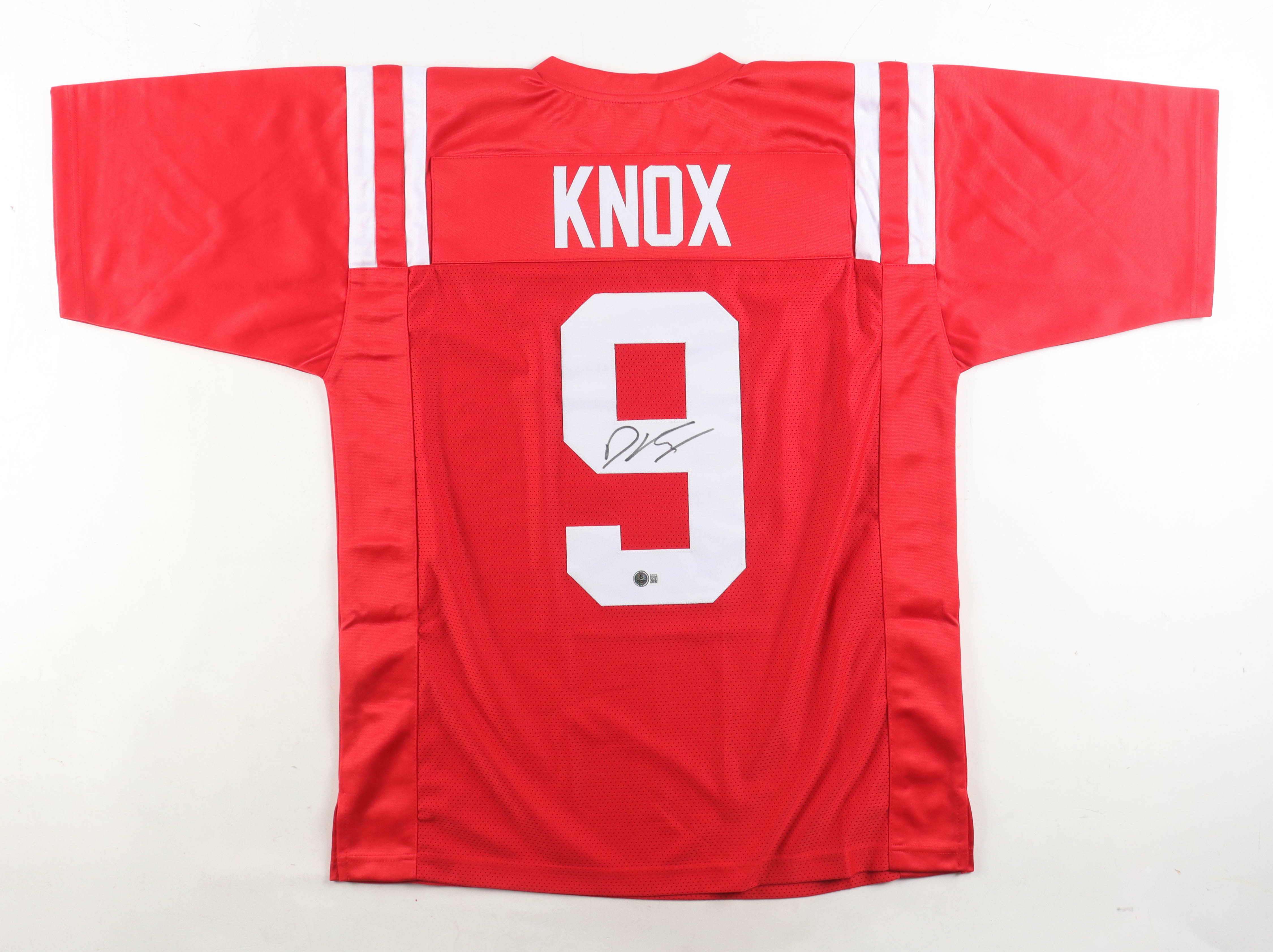 Custom jersey with everything sewn on, size XL. Hand-signed by Dawson Knox.