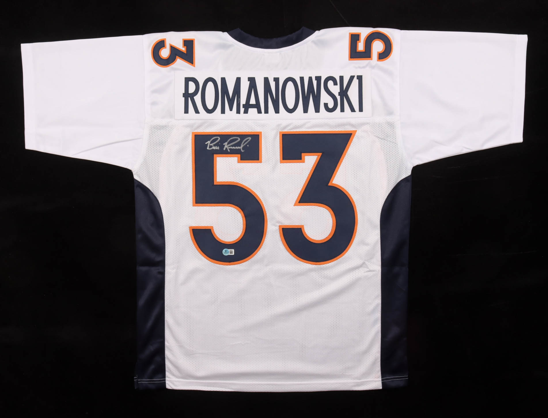 Custom jersey with everything sewn on, size XL. Hand-signed by Bill Romanowski.