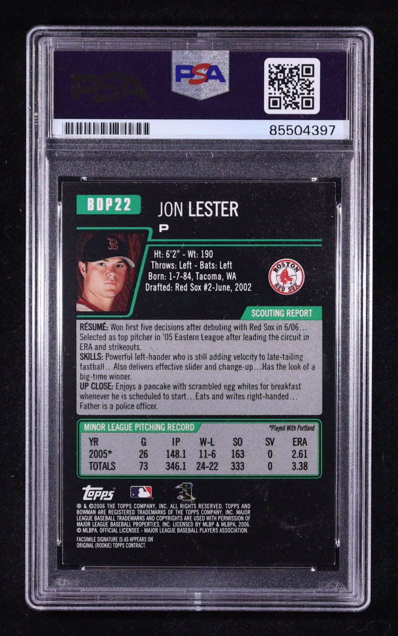 Jon Lester Signed 2006 Bowman Draft #22 RC (PSA)