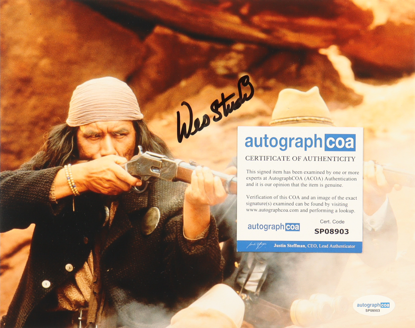 Photo measures 8" x 10" in size and has been hand-signed by Wes Studi.