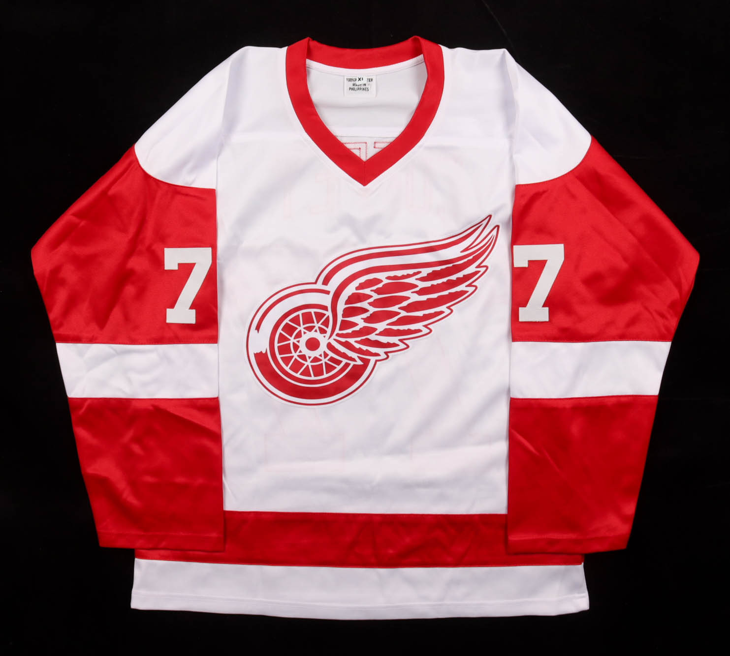 Custom jersey. Everything sewn on, size XL. Hand-signed by Paul Coffey (HOF).