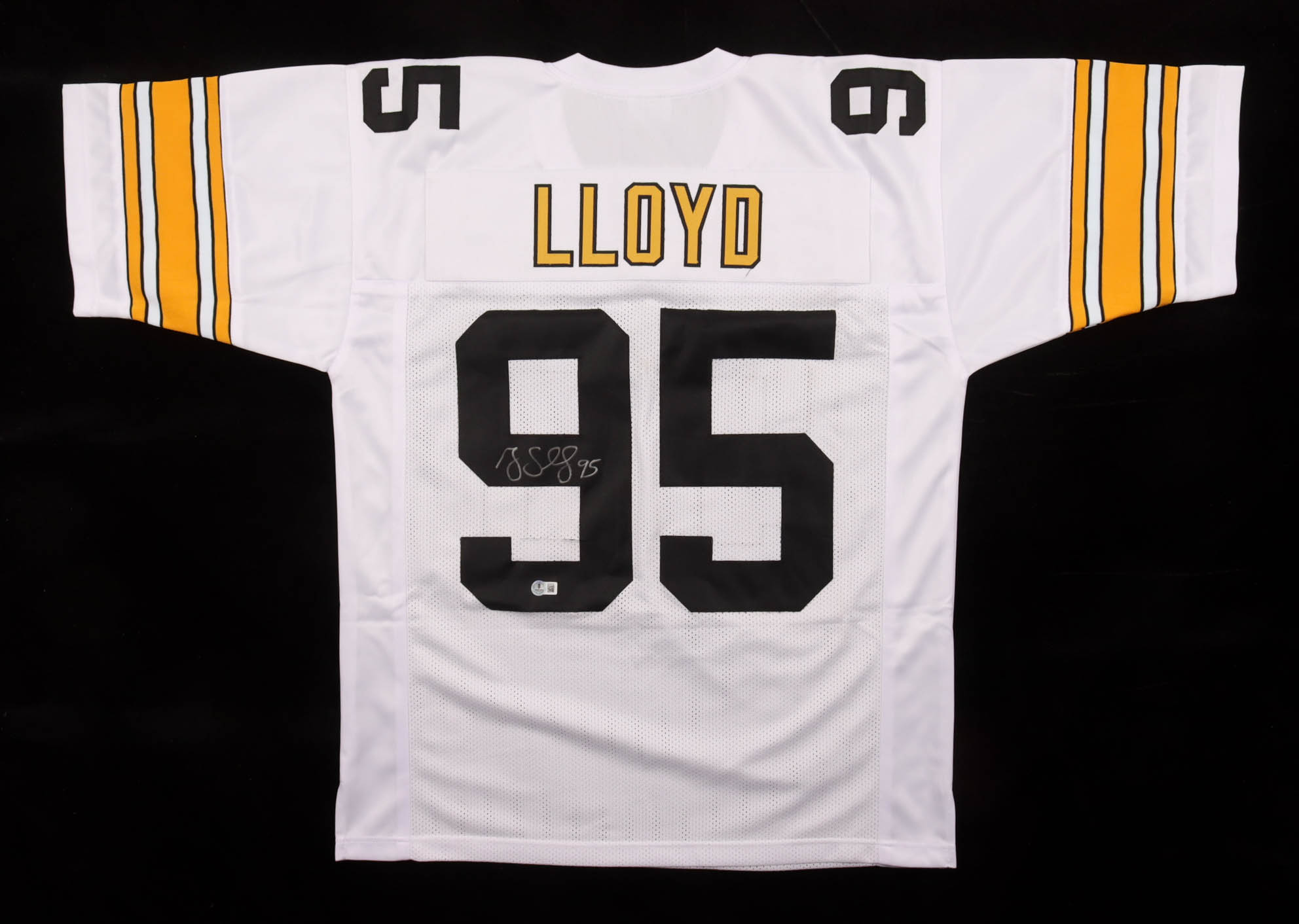 Custom jersey with everything sewn on, size XL. Hand-signed by Greg Lloyd. Please note, there is a tear on and round the reverse number. See photos regarding the condition of the item.