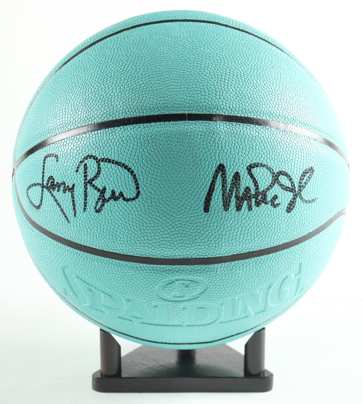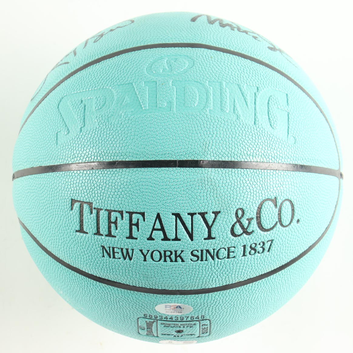 Larry Bird & Magic Johnson Signed Tiffany and Co. NBA Basketball With Display Stand (PSA & Beckett)