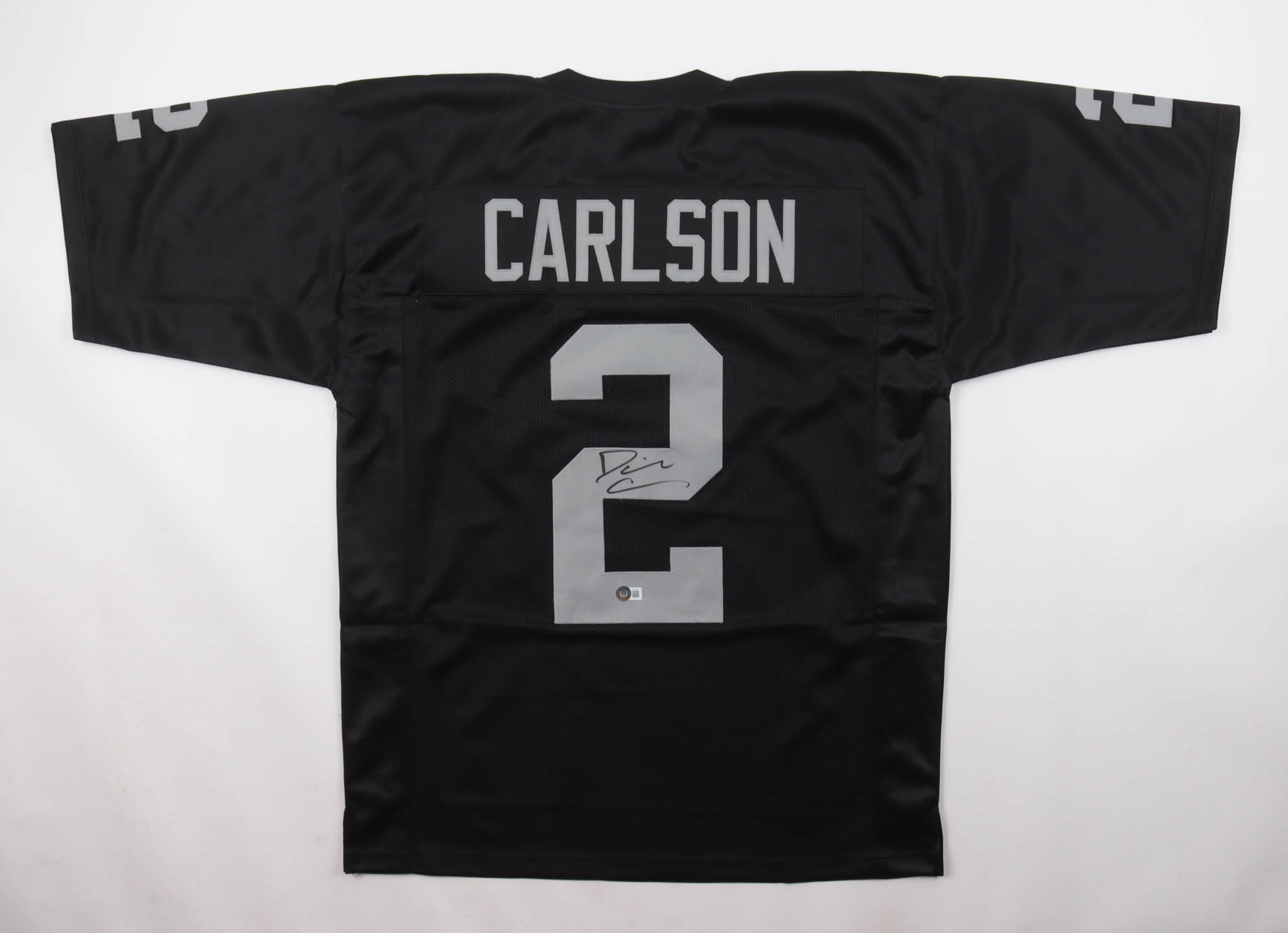 Custom jersey with everything sewn on, size XL. Hand-signed by Daniel Carlson.