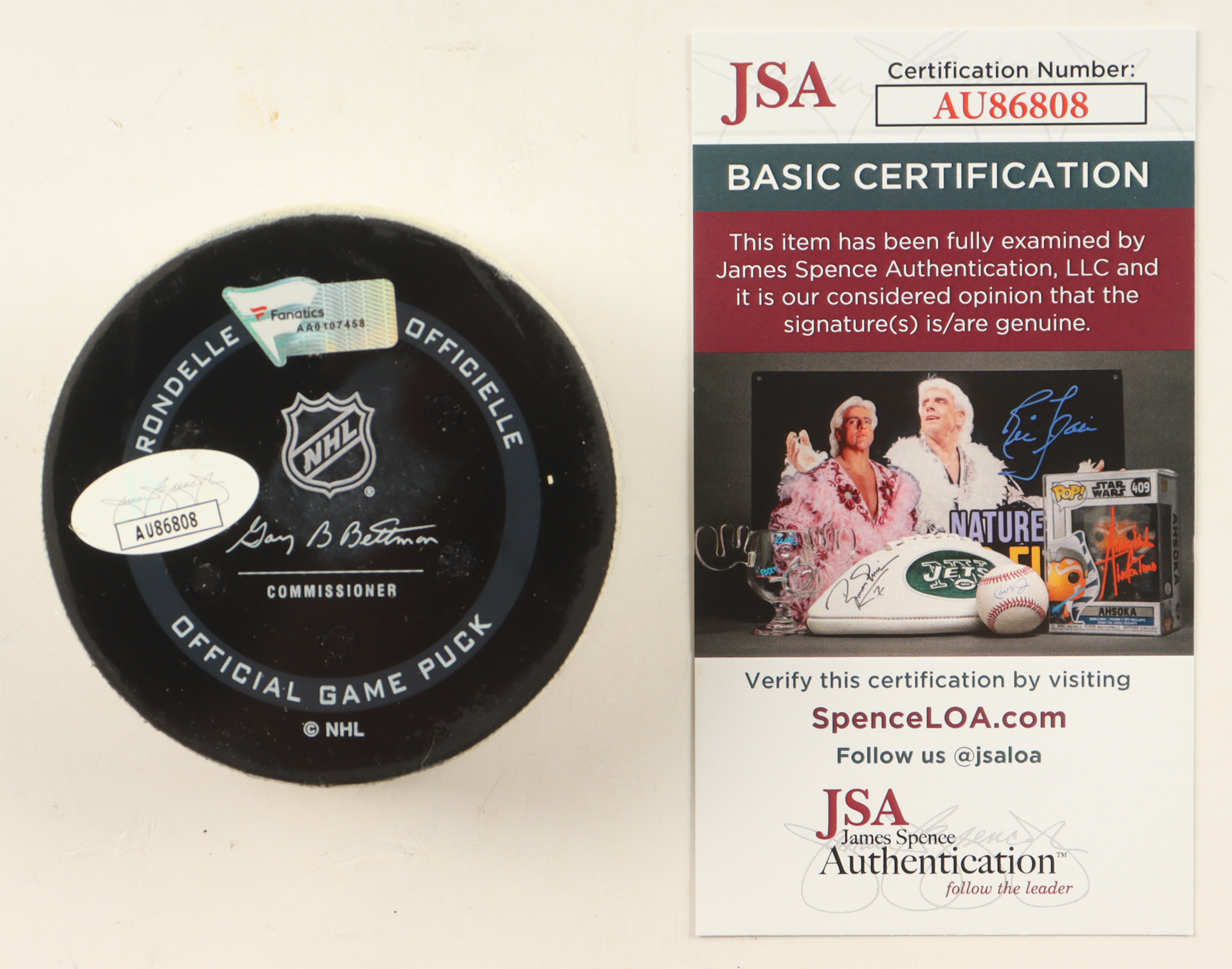 The autograph(s) includes an official Fanatics hologram, as well as an official James Spence Authentication (JSA) hologram and matching COA for authenticity purposes.