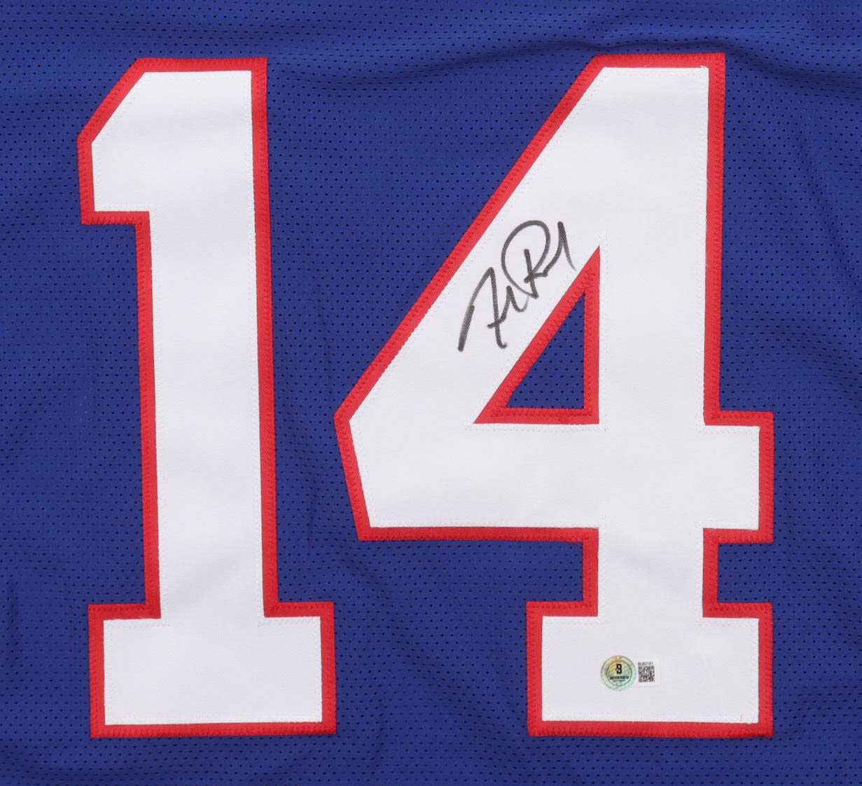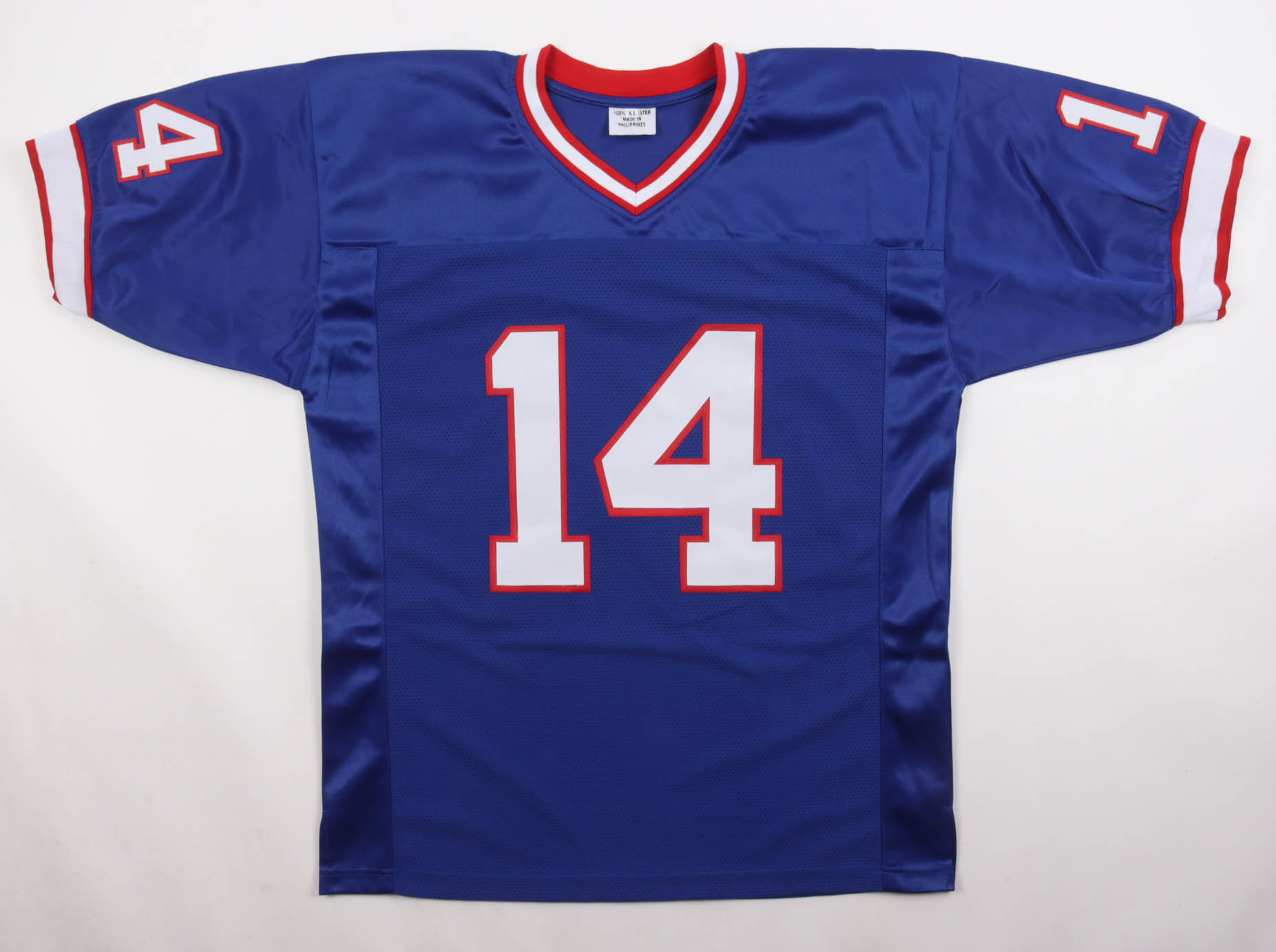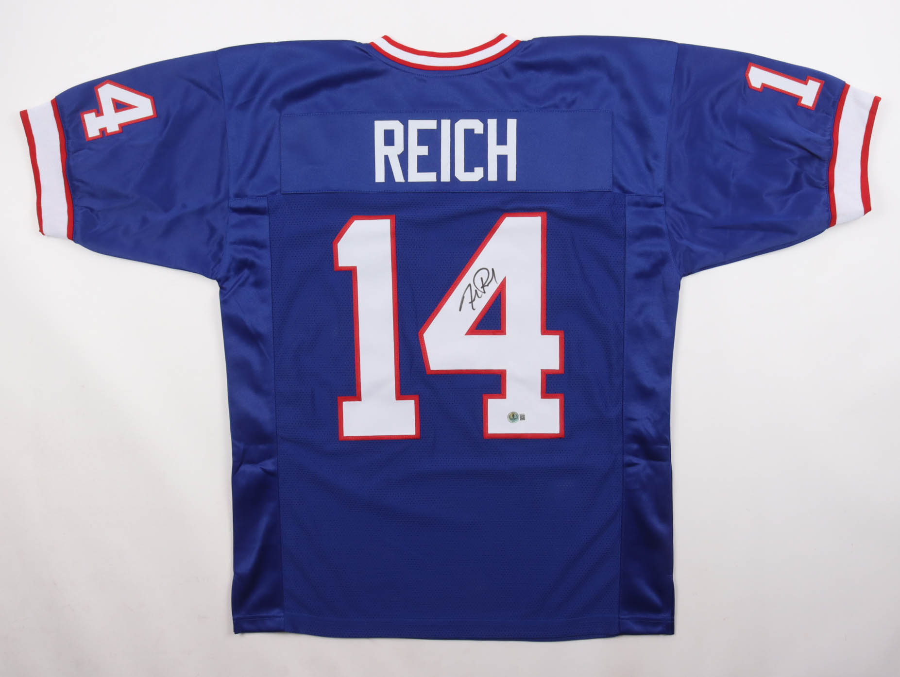 Custom jersey with everything sewn on, size XL. Hand-signed by Frank Reich.