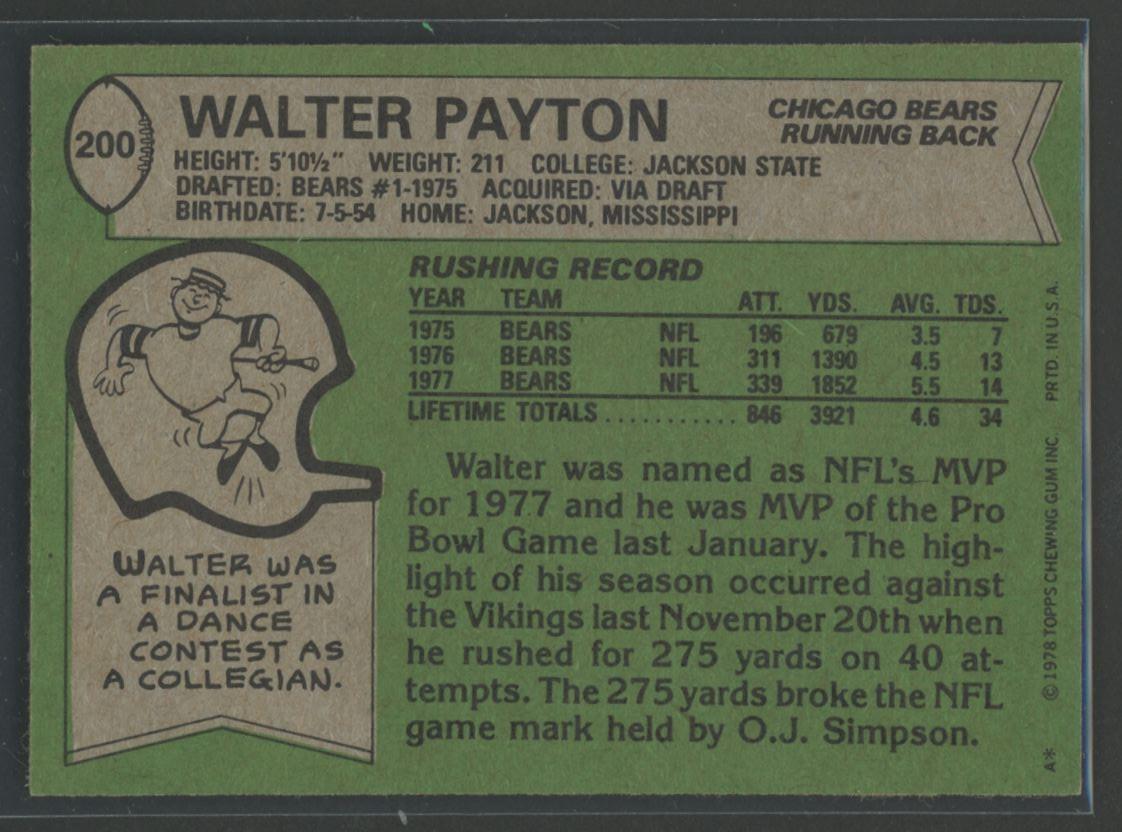Walter Payton 1978 Topps #200 AP