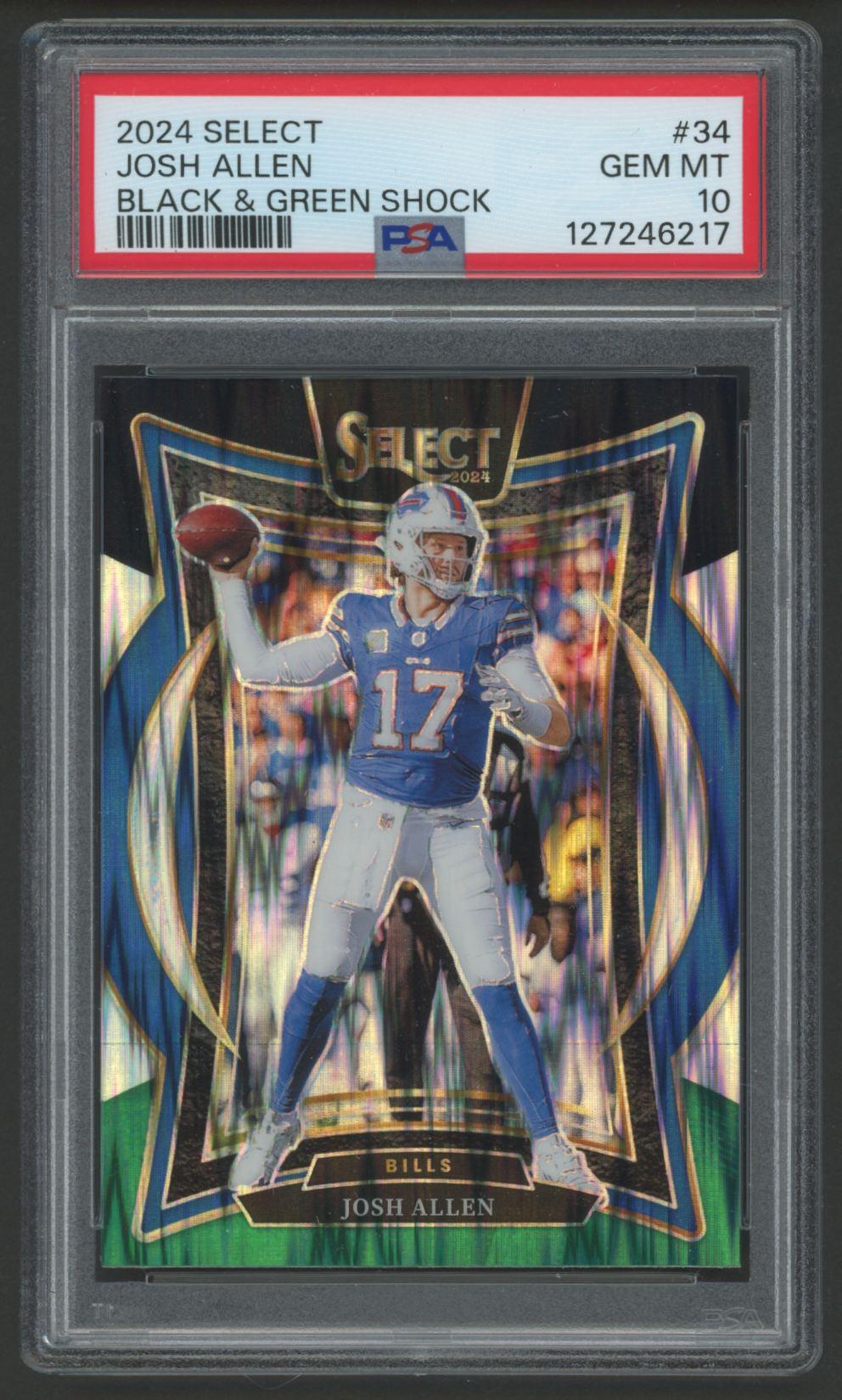 Josh Allen 2024 Select Prizm Black and Green Shock #34 (PSA 10)