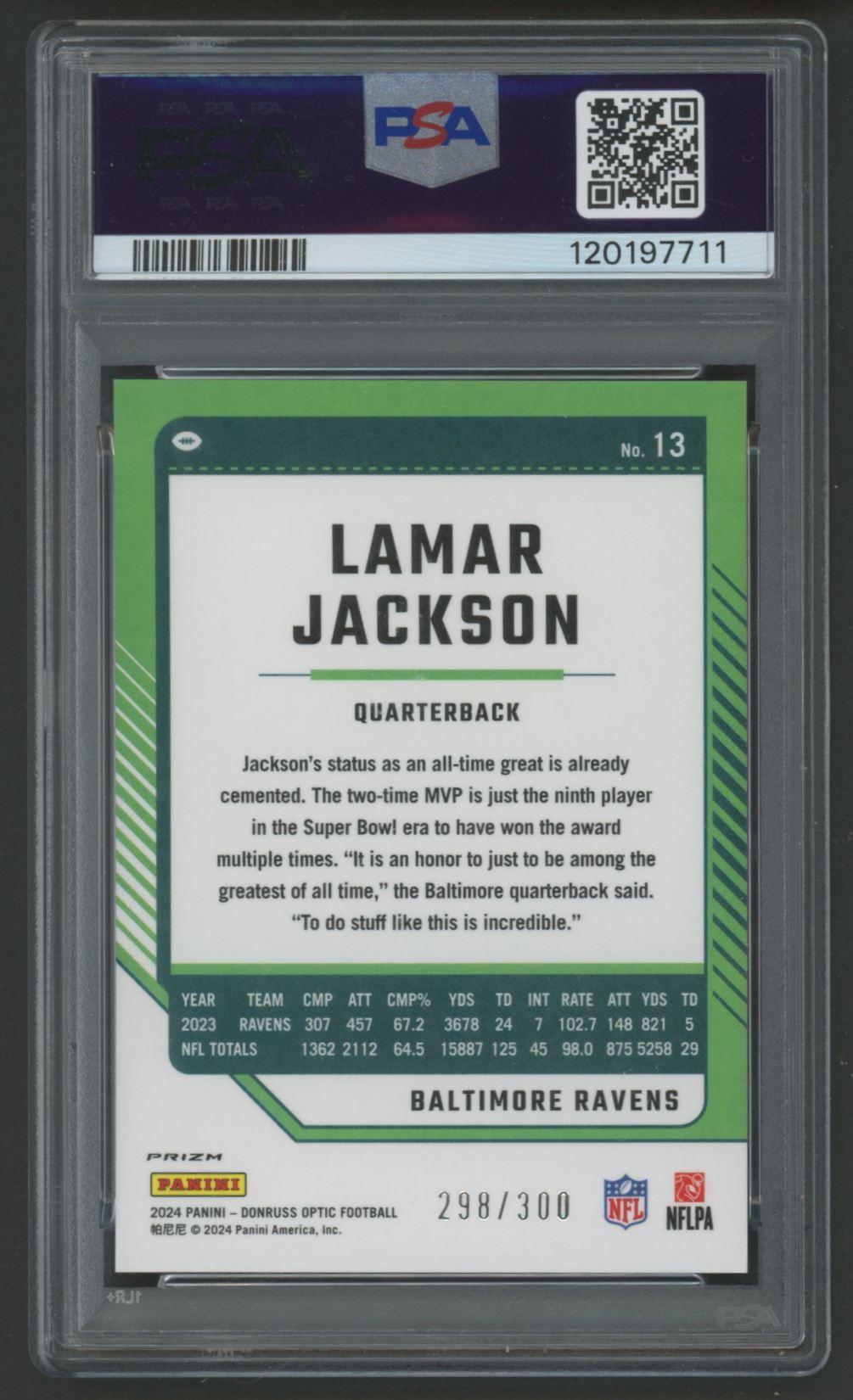 Lamar Jackson 2024 Donruss Optic Wave #13 #299/300 (PSA 10)