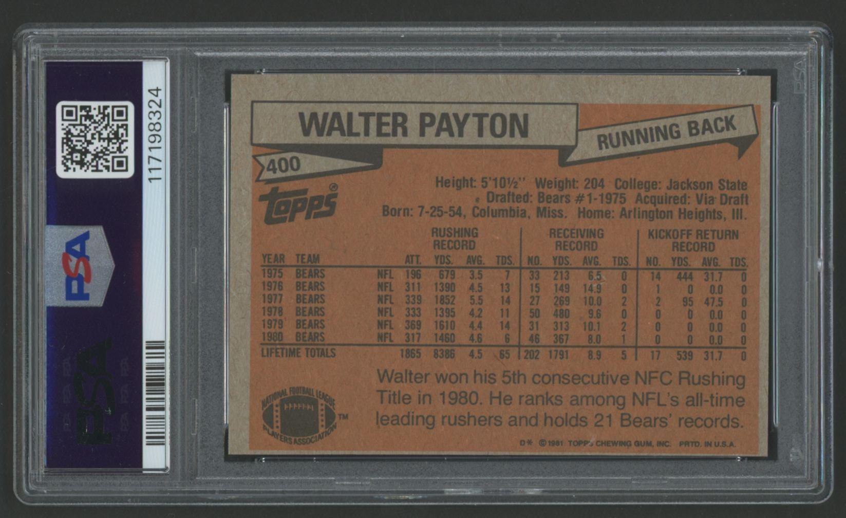 Walter Payton 1981 Topps #400 (PSA 8)