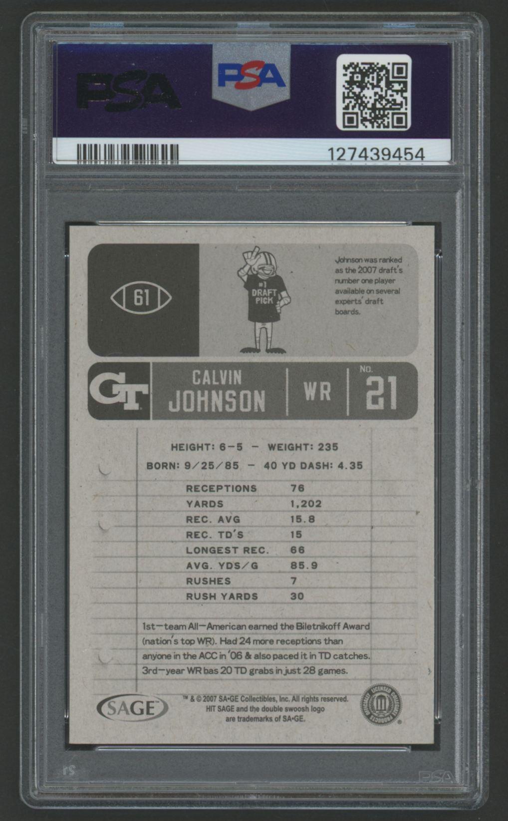 Calvin Johnson 2007 SAGE HIT #61 RC (PSA 10)