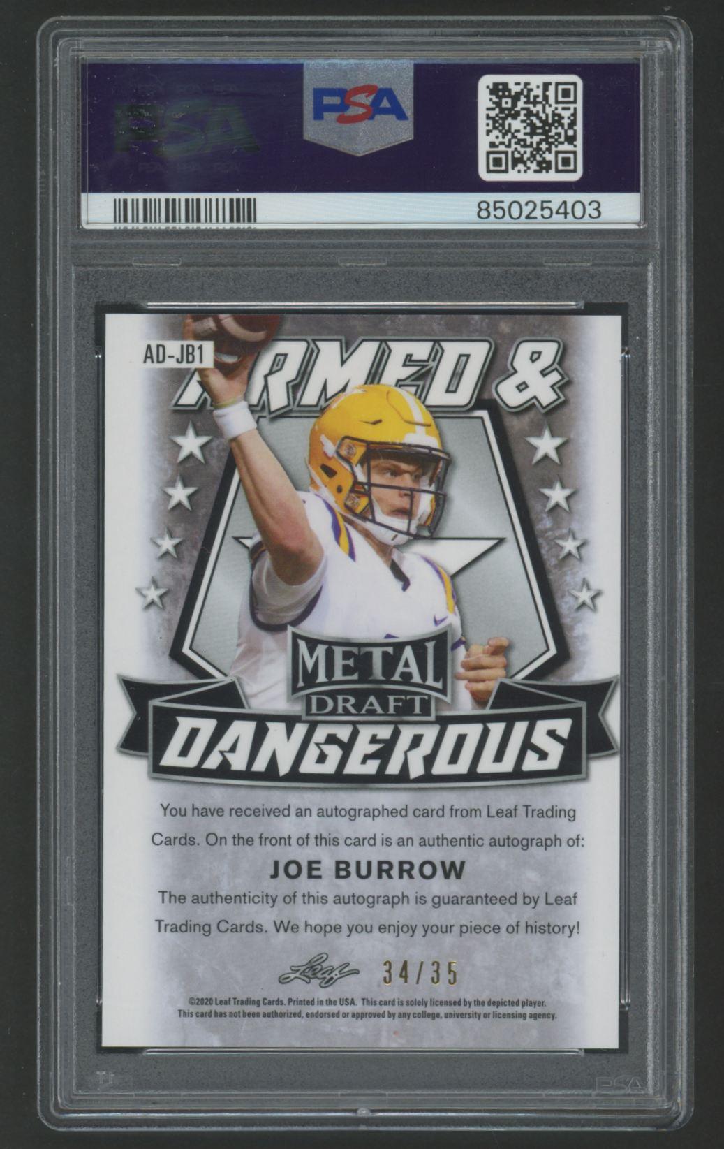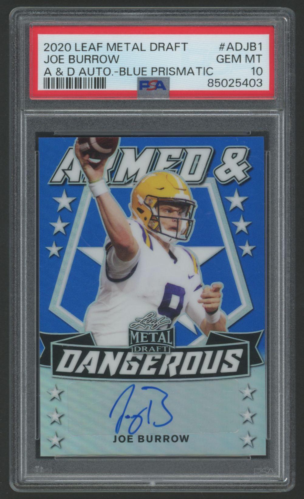 Joe Burrow 2020 Leaf Metal Armed & Dangerous Blue Prismatic #ADJB1 #34/35 (PSA 10)
