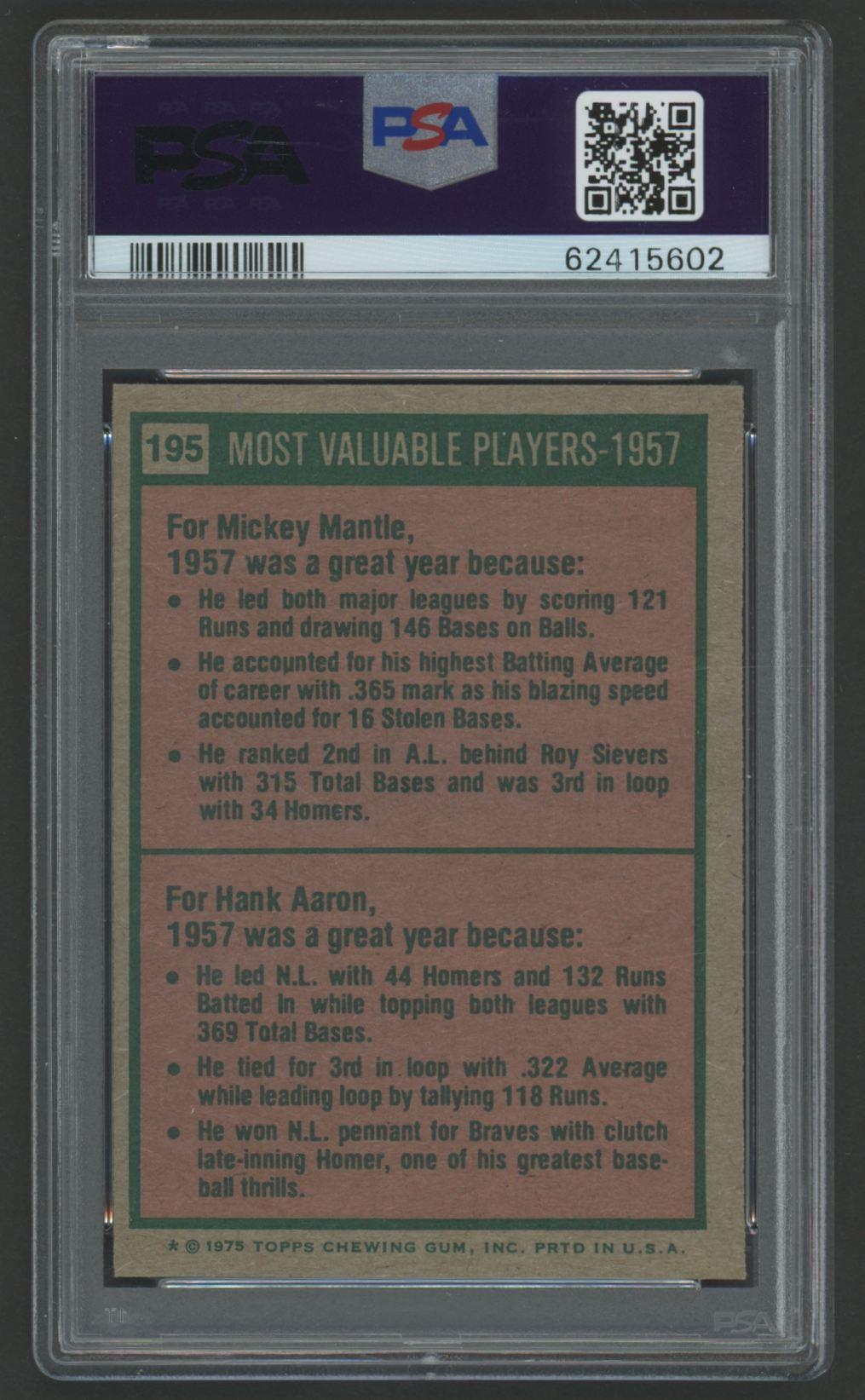 Mickey Mantle / Hank Aaron 1975 Topps / 1957 MVP #195 (PSA 7)
