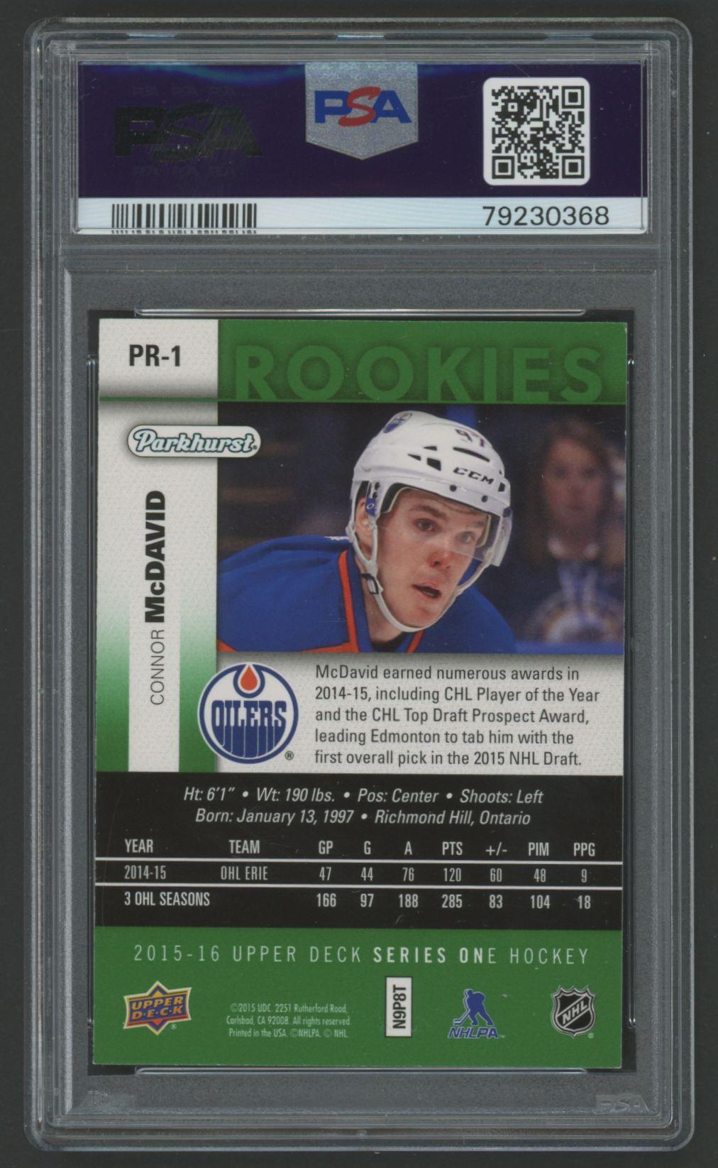Connor McDavid 2015 Upper Deck Parkhurst Rookies #PR1 (PSA 9)